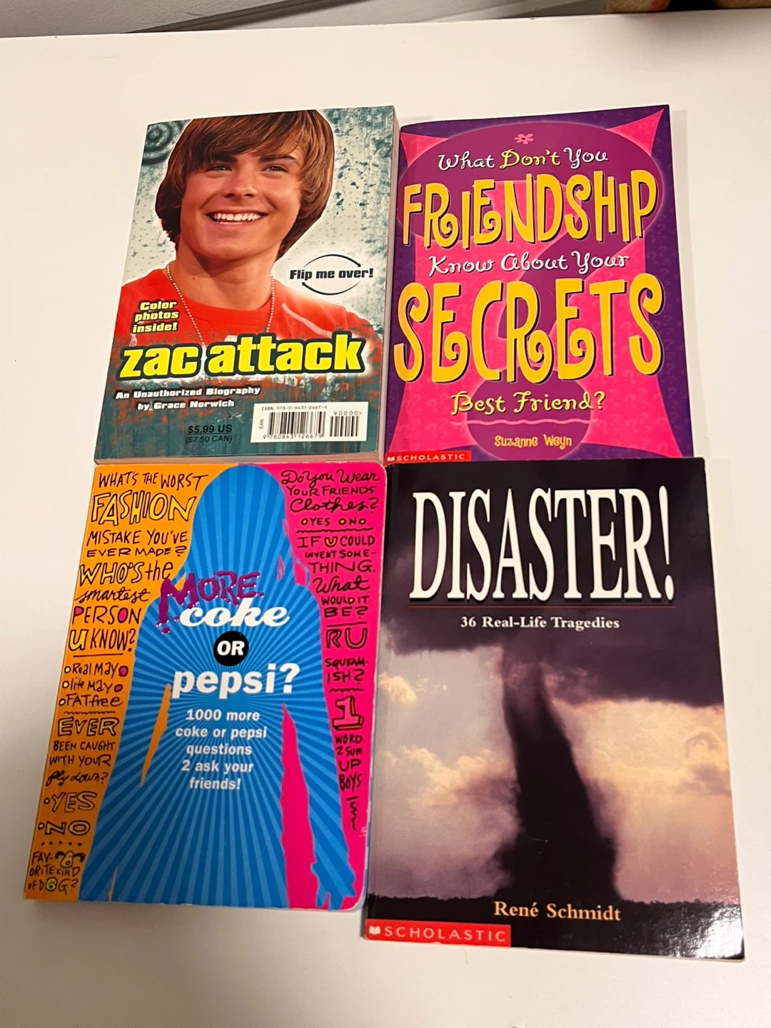 Buy & SellLot of 4 Scholastic BooksLot of 4 Scholastic Books$5They're great for those interested in pop culture and intriguing stories. Very 90s booksWHERE TO MEETOutside Ramen RaijinView MapSELLERMikeBay Street Corridor36337 reviews0 chats·0 favorites·2 viewsSEND CHAT TO SELLERHi Mike! I’m interested in your listing.Hi Mike! I’m interested in your listing.Get the Karrot app to chatSign In to chat