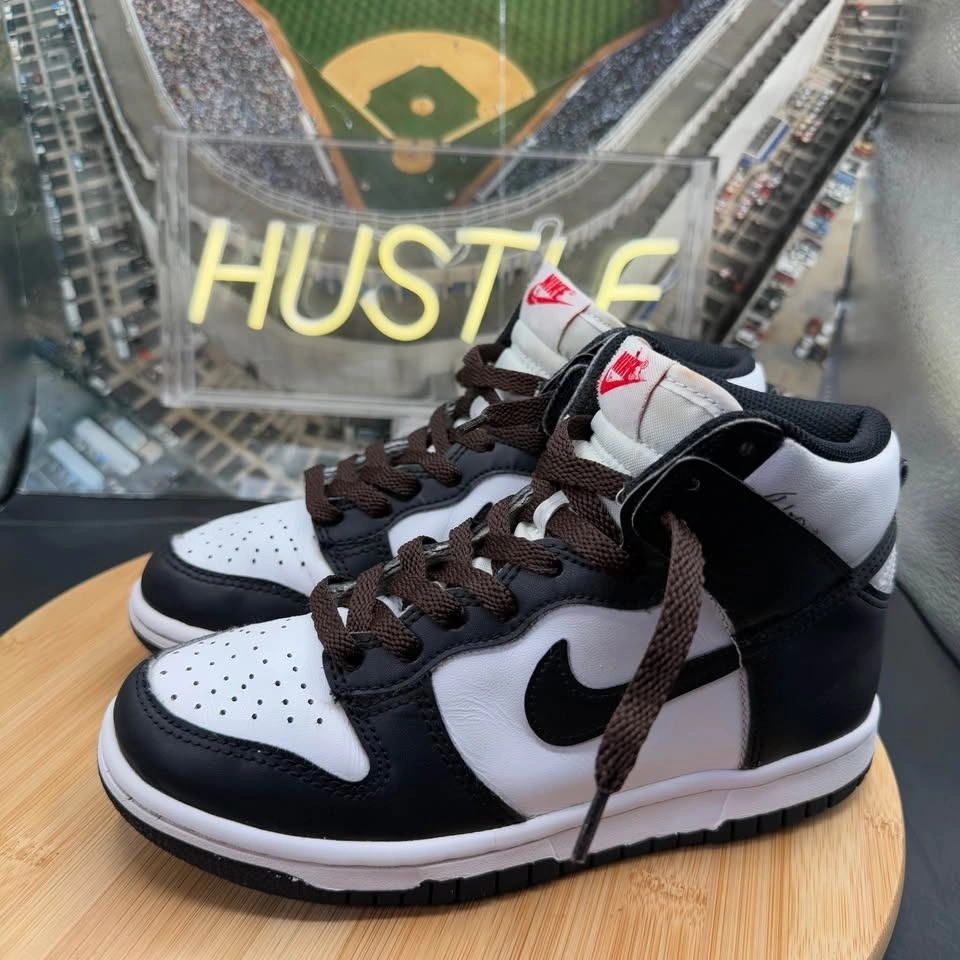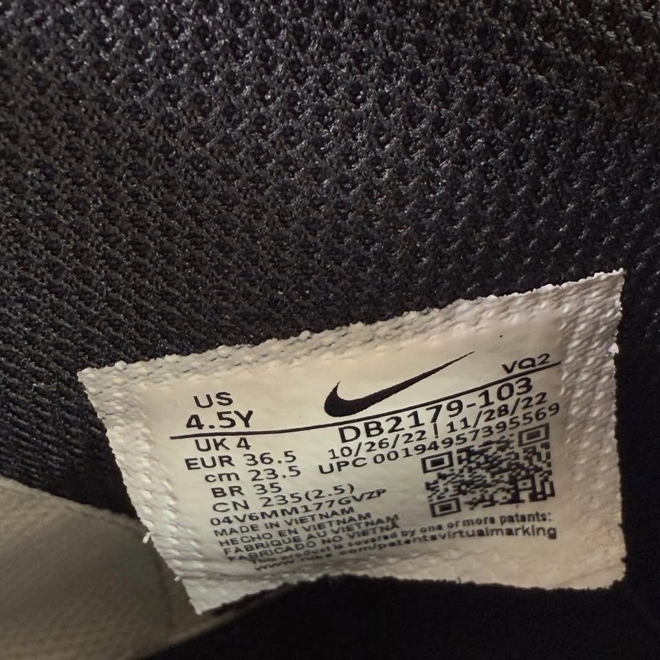 In good preowned condition. Youth Sz 4.5Y. No box. Has replacement laces. Tongue slightly dirty.