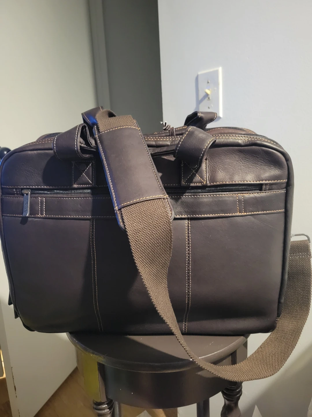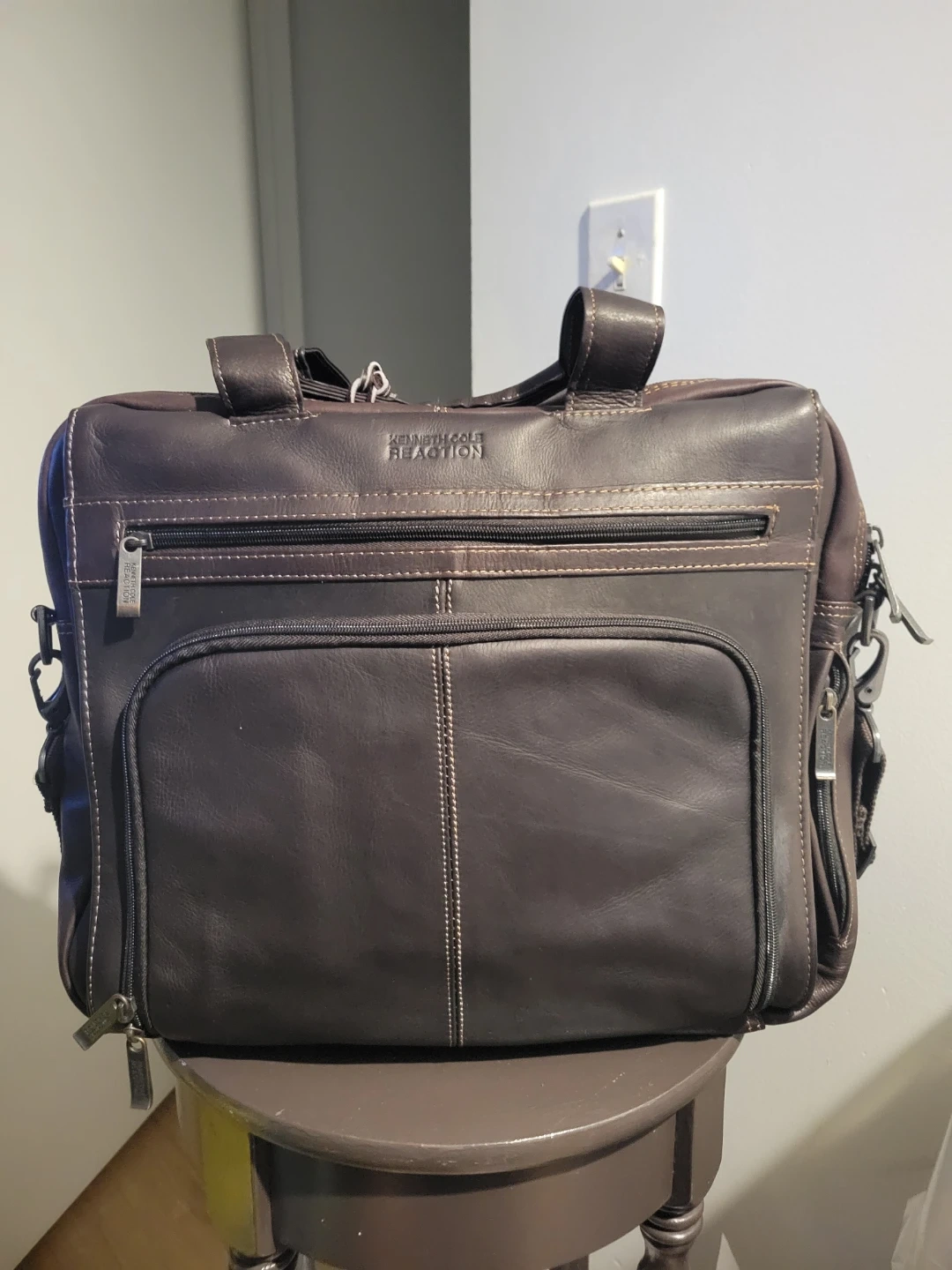 Selling a Kenneth Cole Reaction leather briefcase in a brand new condition! It's a stylish and functional bag, perfect for work or travel. The bag features multiple compartments and zippers for easy organization. The leather is genuine, with a rich brown colour.