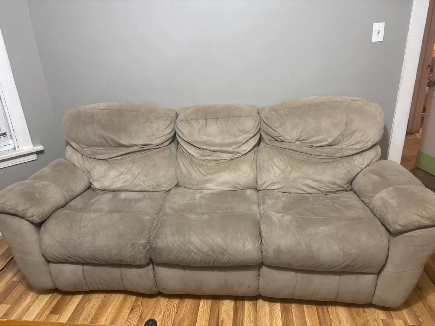 Buy & SellTan Reclining SofaTan Reclining Sofa$50Three-seater reclining sofa in a tan color. Upholstered in a soft fabric. Reclining mechanism works well. Some signs of wear visible.WHERE TO MEET4915 w addison stView MapSELLERCristinaPortage Park100 reviews1 chats·1 favorites·48 viewsSEND CHAT TO SELLERHi Cristina! I’m interested in your listing.Hi Cristina! I’m interested in your listing.Get the Karrot app to chatSign In to chat