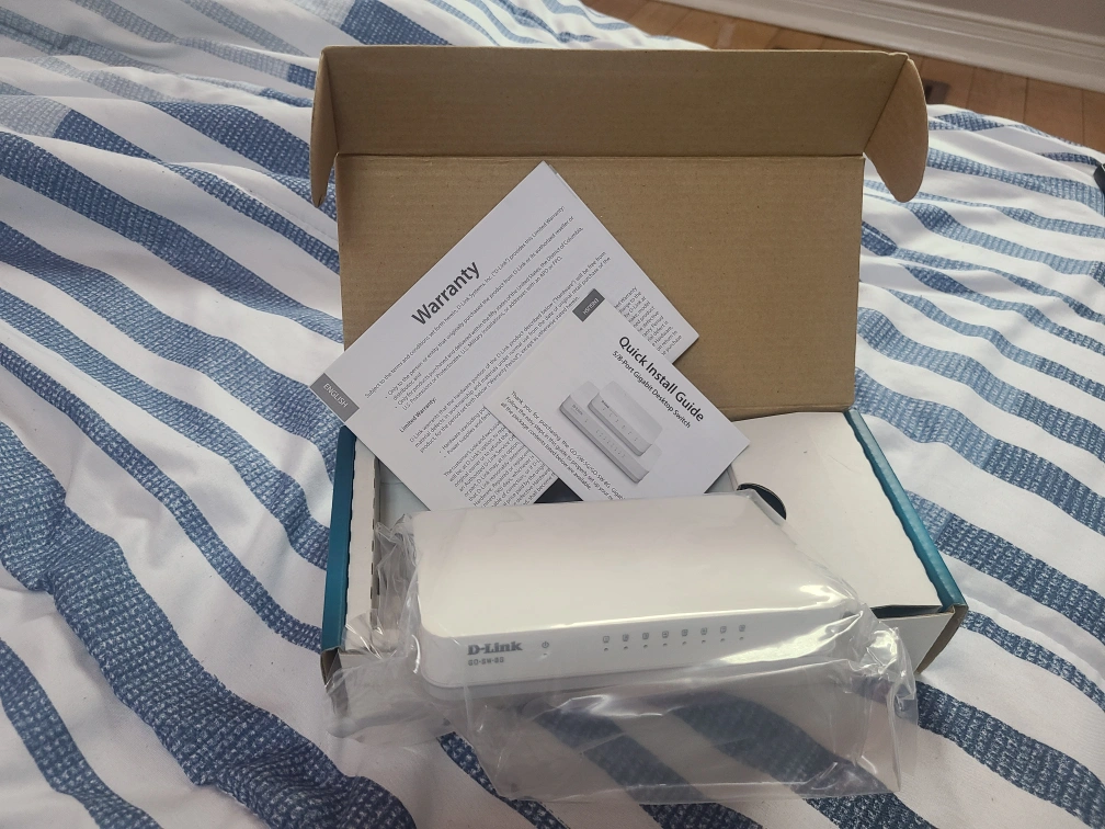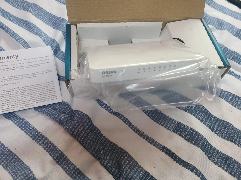 178This is a D-Link 8-Port Gigabit Desktop Switch. It is in the original packaging.