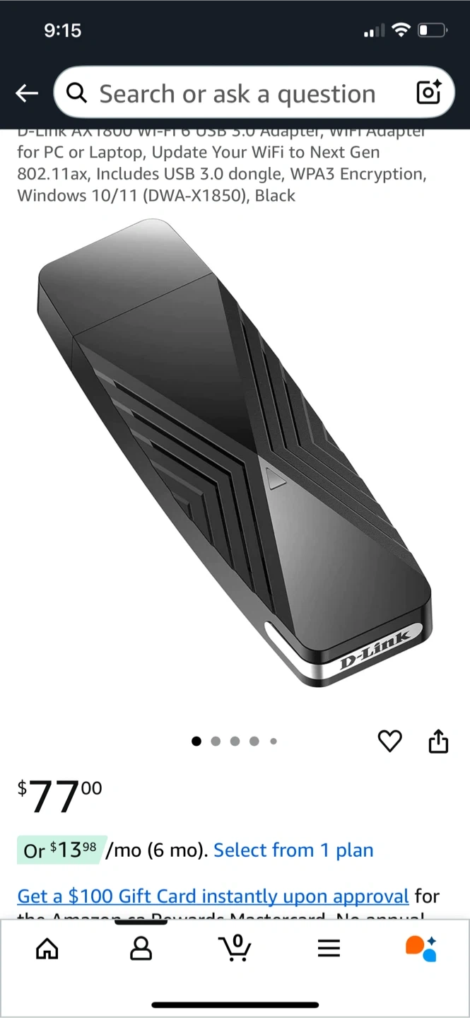 Selling a D-Link AX1800 Wi-Fi 6 USB 3.0 Adapter, model DWA-X1850. It's a Wi-Fi adapter for PC or laptop, designed to update your Wi-Fi to the next generation 802.11ax. Includes a USB 3.0 dongle and WPA3 encryption. Originally bought for $77
