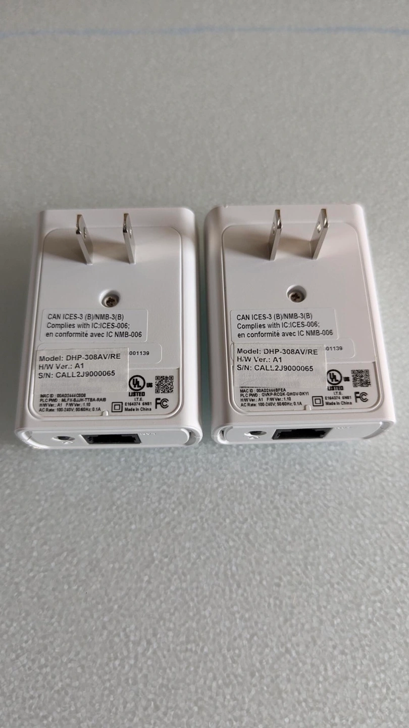 Selling a pair of D-Link DHP-308AV Powerline AV Mini Adapters. These adapters allow you to extend your network using your home's existing electrical wiring. They are in great condition and ready to use! Model: DHP-308AV/RE