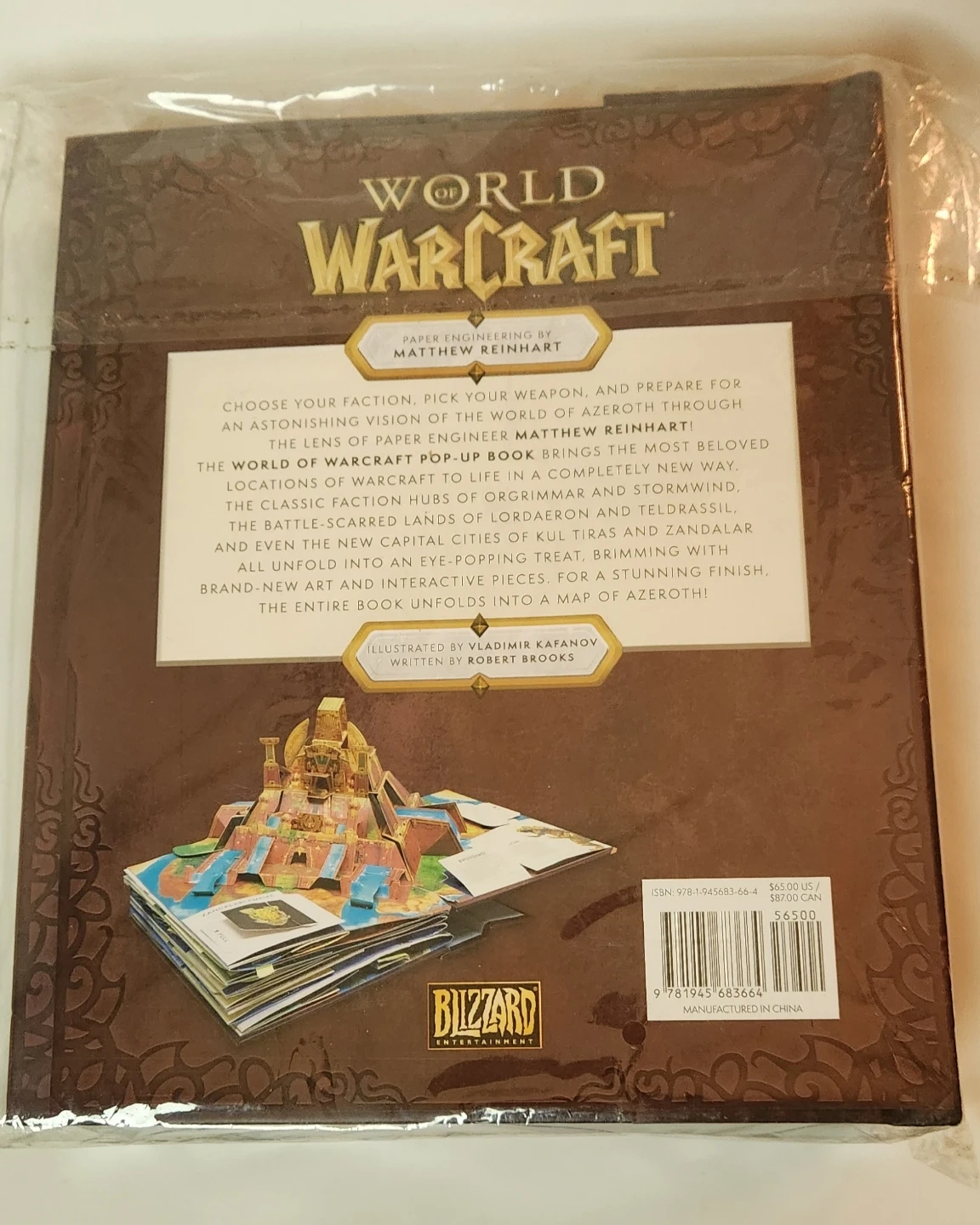 Built by best-selling paper engineer Matthew Reinhardt, the World of Warcraft Pop- Up Book brings the most well-loved locations of Warcraft to life, from the classic faction hubs of Orgrimmar and Stormwind, to the battle-scarred lands of Lordaeron and Teldrassil, and even the new capital cities of Kul Tiras and Zandalar! Each page unfolds into an eye-popping treat, depicting iconic locations with brand-new art in interactive ways that you’ve never seen before. Unfold each individual spread to form a map of Azeroth!