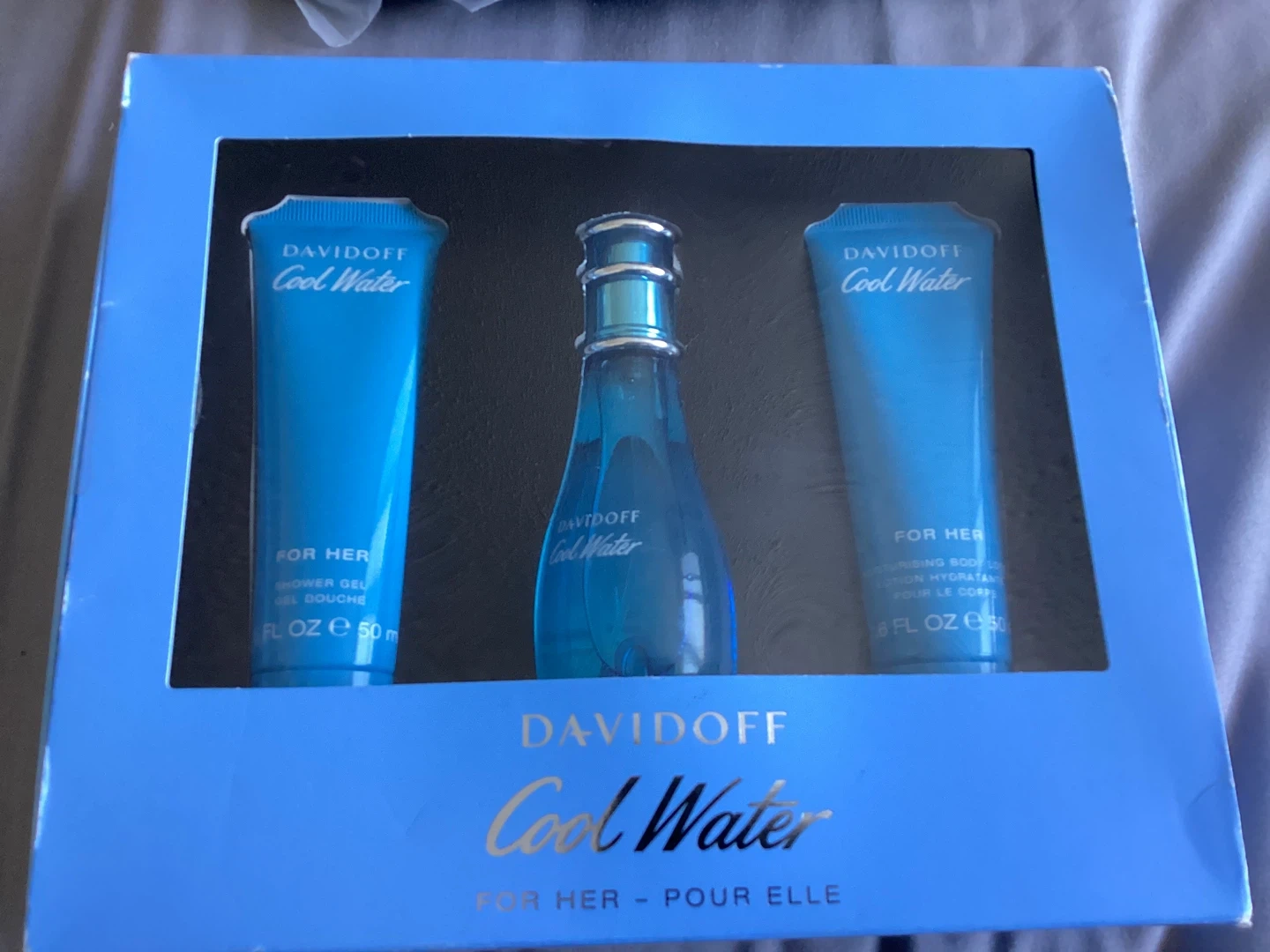 This Davidoff Cool Water gift set for her includes an eau de toilette spray, a perfumed shower gel, and a perfumed body lotion. All items are 50ml or 1.7 fl oz. It's a great gift idea!