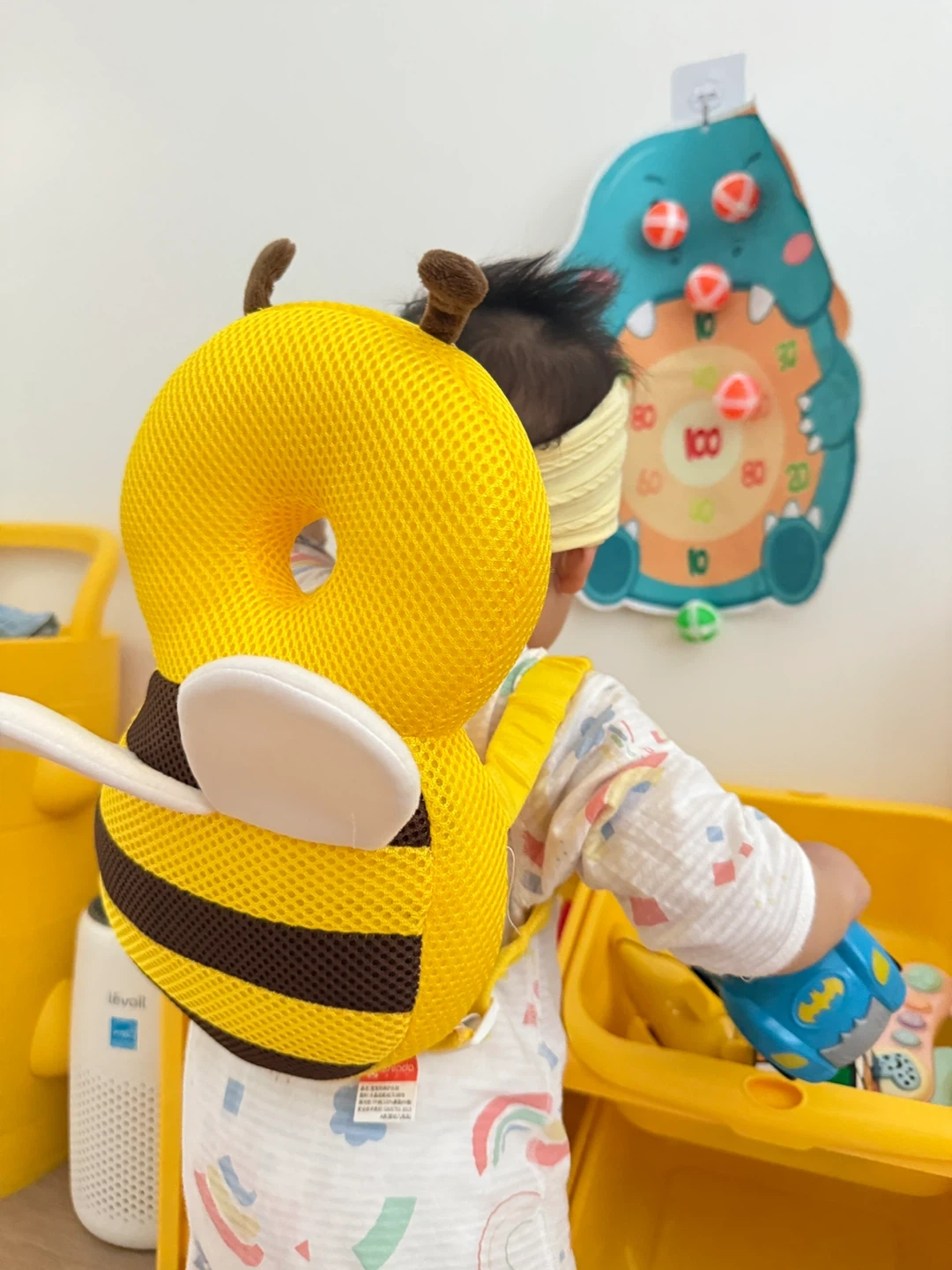 I'm selling a cute bee head protector and a set of knee pads. The head protector is designed to protect your baby's head while they are learning to sit or walk. The knee pads will protect their knees when crawling. They are both in great condition!