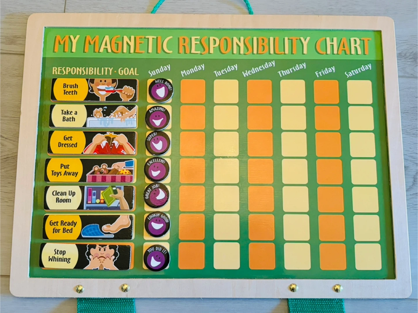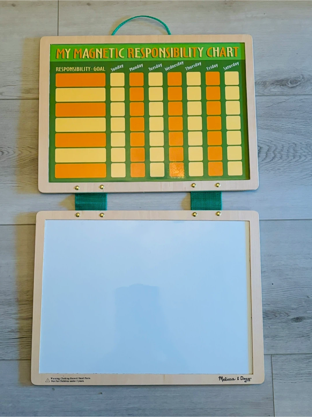 Get your little ones organized with this Melissa & Doug Magnetic Responsibility Chart! It's a fun way to teach responsibility and track daily tasks. Comes with lots of magnetic pieces to customize the chart for your child's needs
