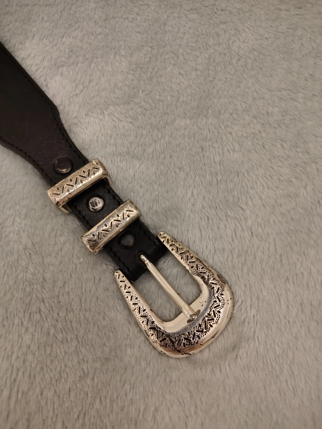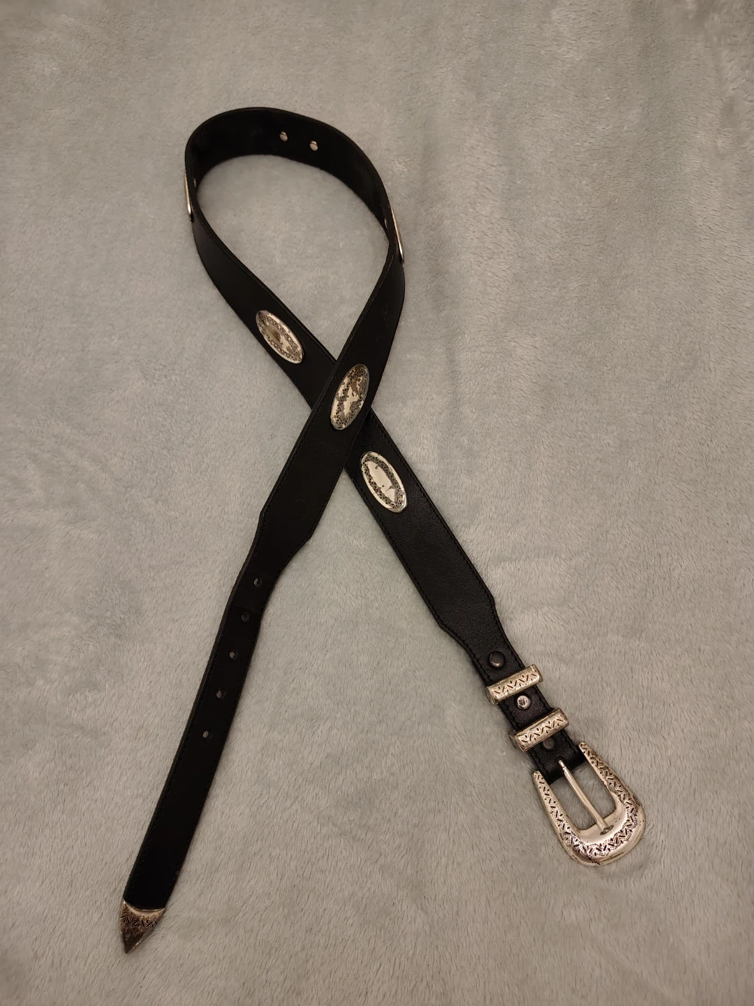 Excellent condition, but buckle has light tarnish/patina, please see photos, this is pretty typical for a piece this aged and honestly I loved it when I wore more western outfits 🤣
