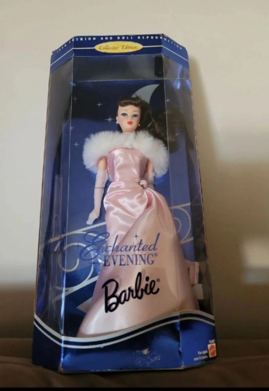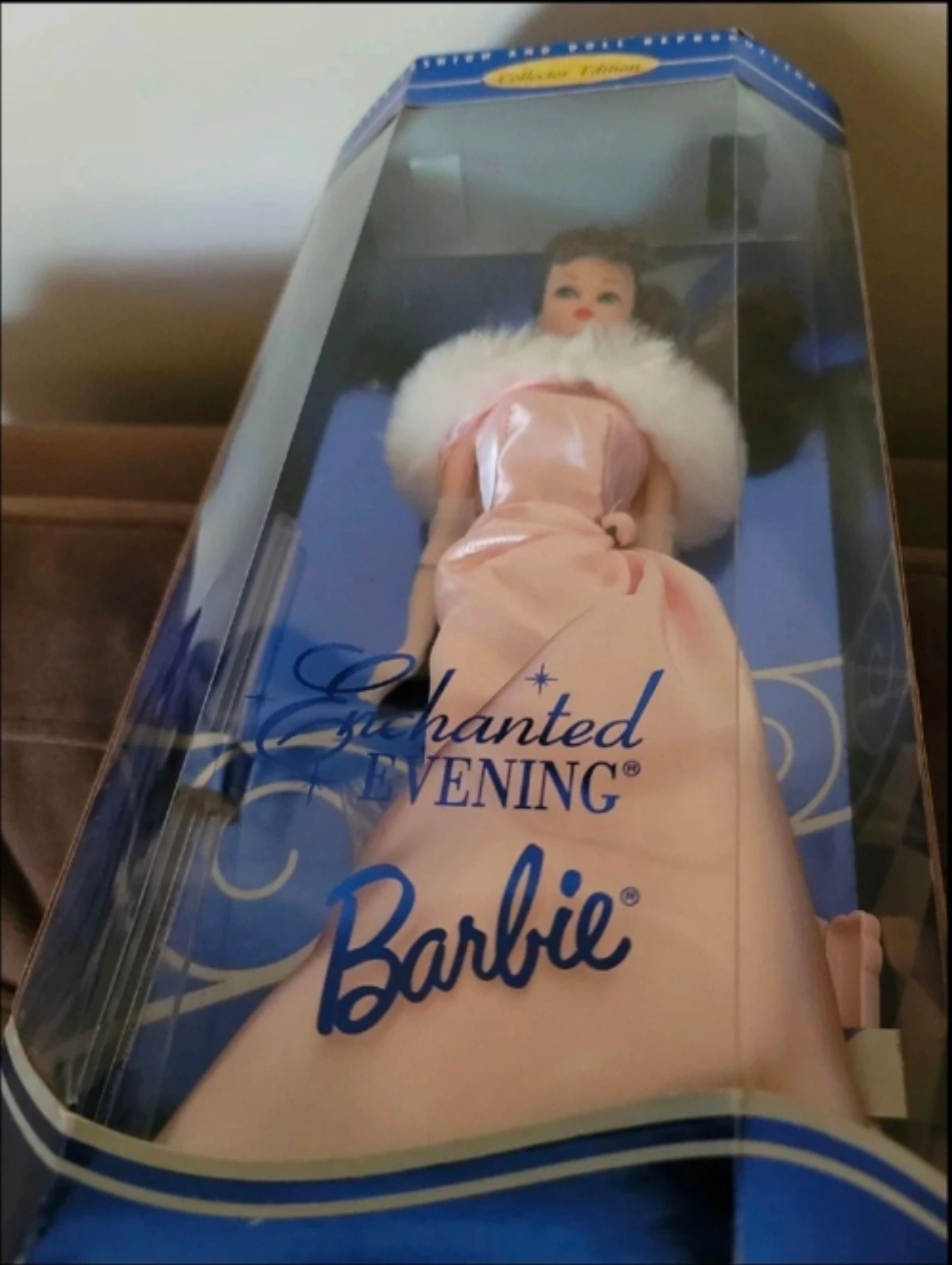 Selling an Enchanted Evening Barbie Doll, a Collector Edition item! This doll is a beautiful reproduction of the iconic 1960s Barbie, featuring a lovely pink gown and elegant design. It's a wonderful addition to any Barbie collection or a special gift for a Barbie enthusiast