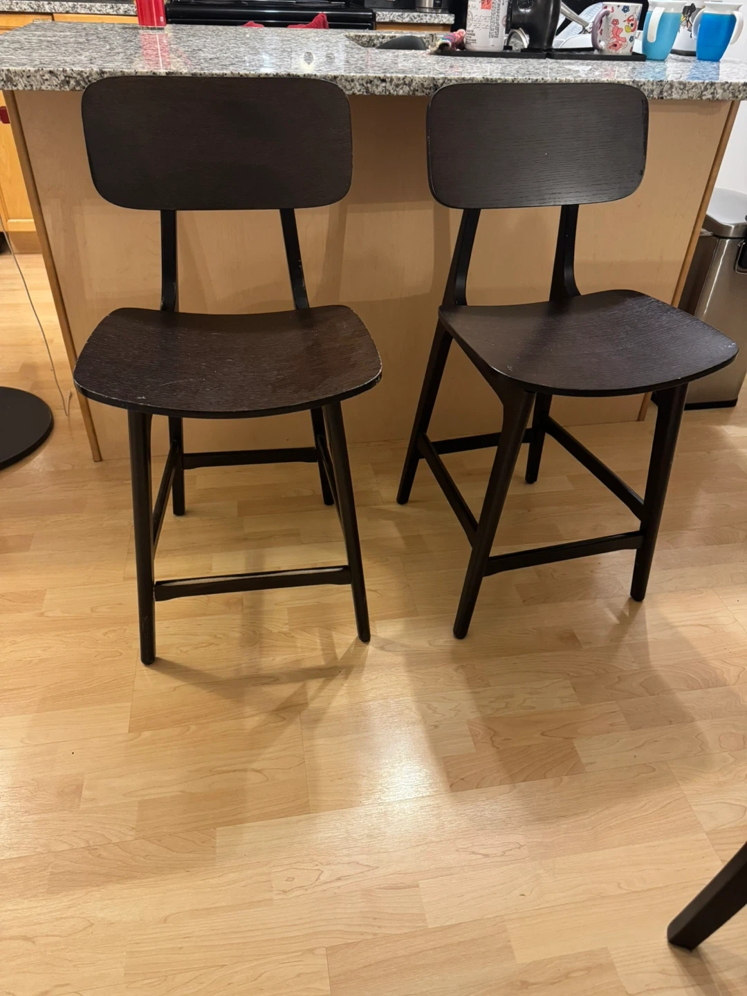 Dark Brown Wooden Counter Stools (Set of 2)