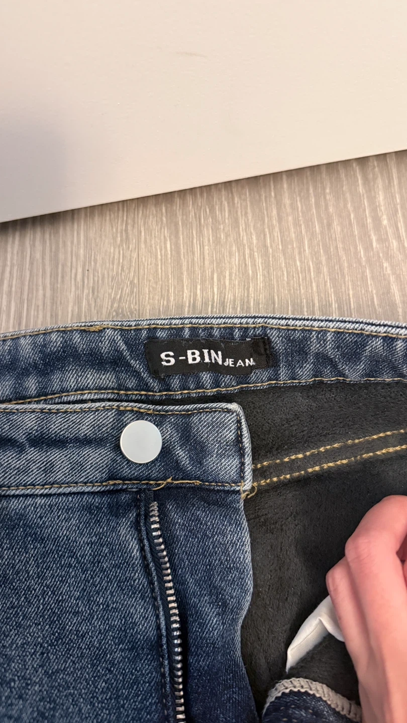 These S-BINJEAN denim jeans come in a size L. They are made of 97% polyester and 3% polyurethane.