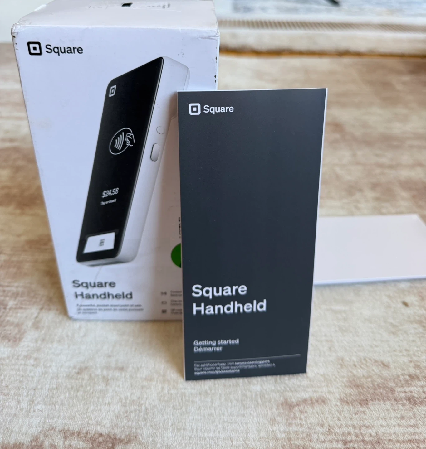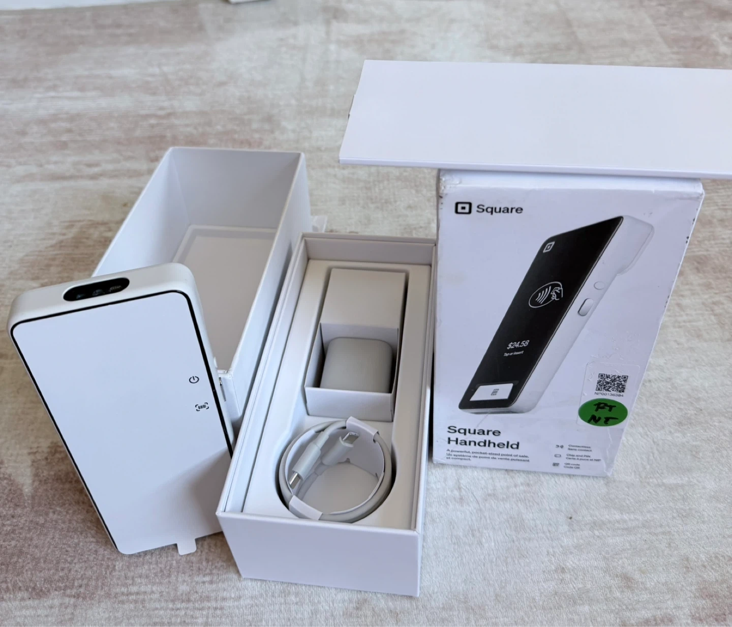 This is a Square Handheld portable Point of Sale device. It's designed to accept payments for businesses. Includes the device, charging cable, and original box with inserts.
