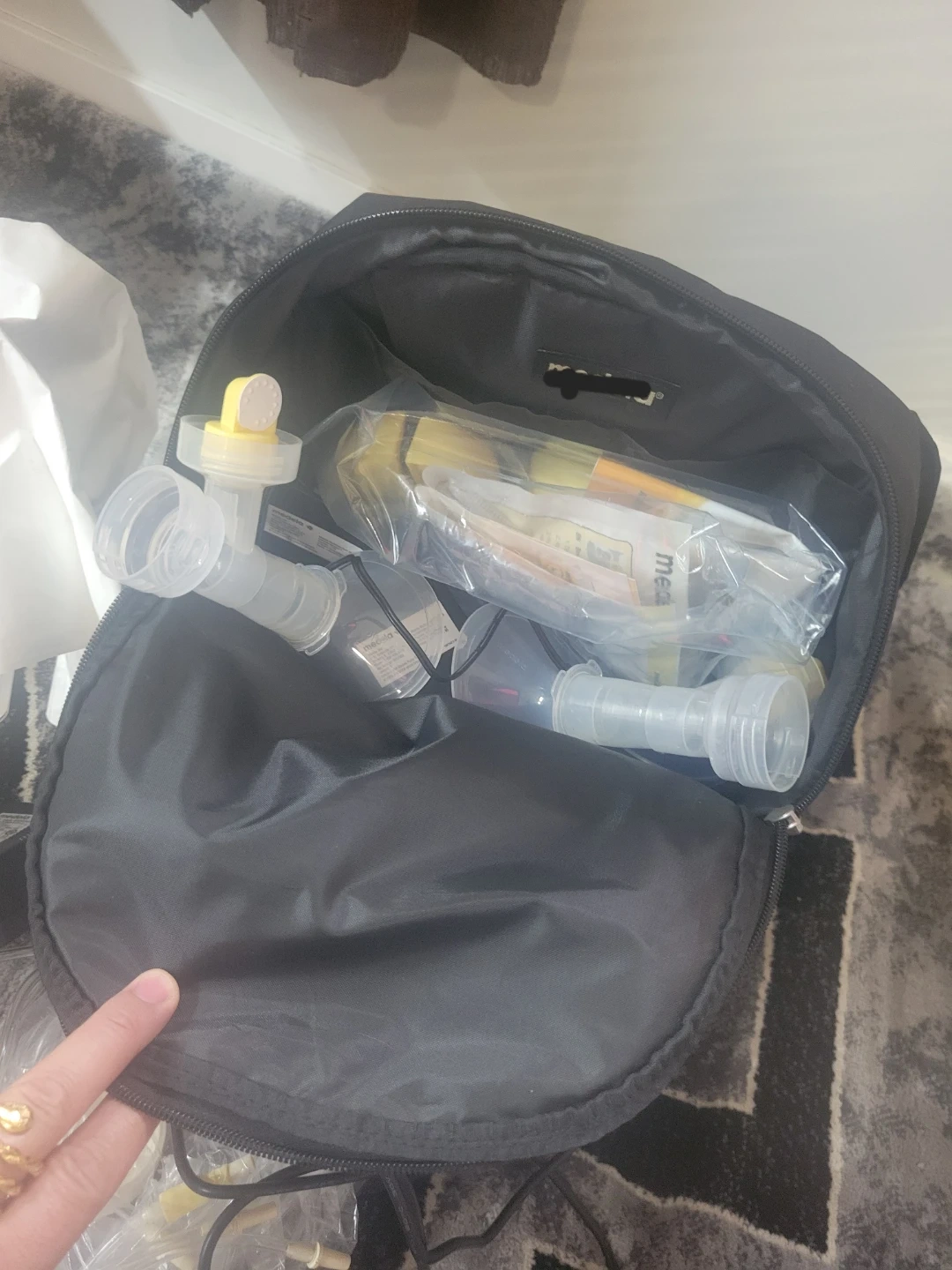This is a Medela Pump in Style Advanced breast pump kit. It comes with all the components shown in the images, including the pump motor, tubing, and collection bottles. Great for pumping on the go!