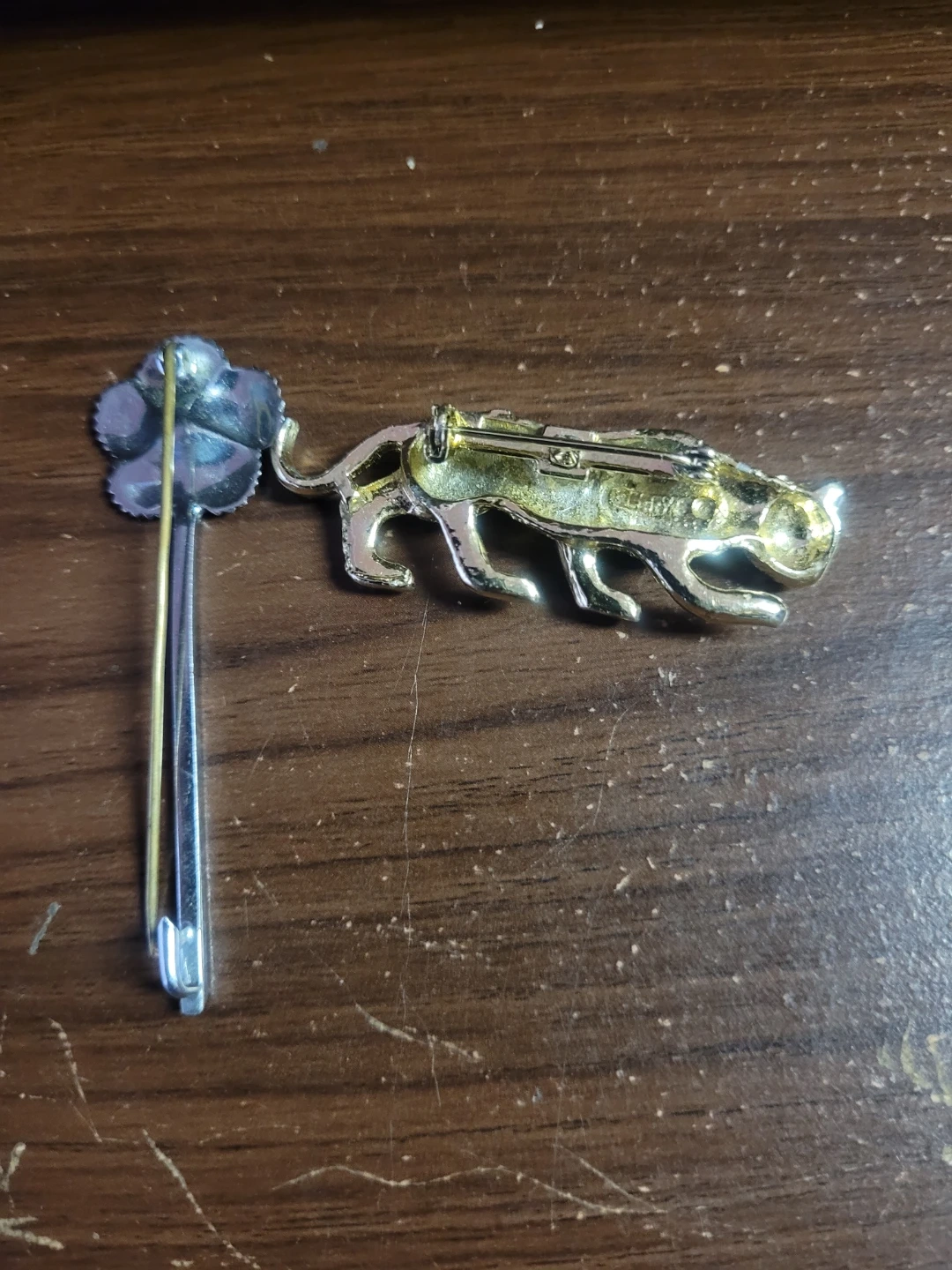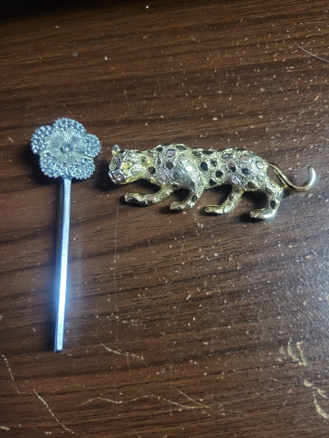 Vintage Leopard Brooch and Flower Stick Pin Set