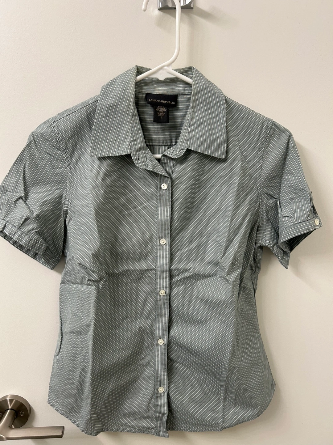 Women's short-sleeve button-down shirt.