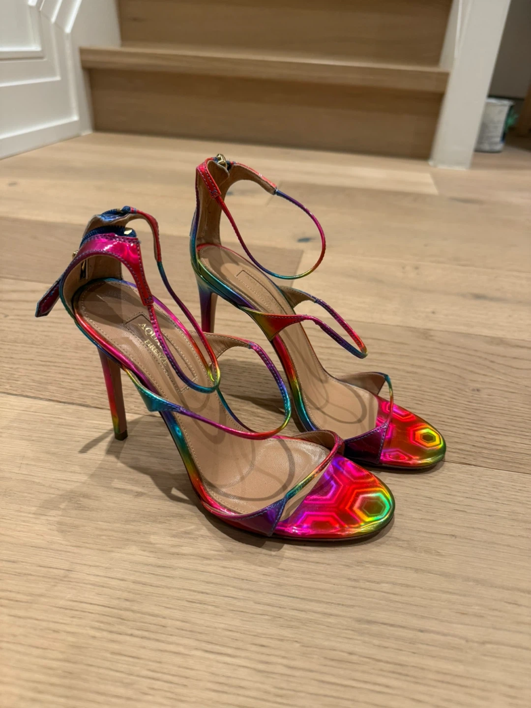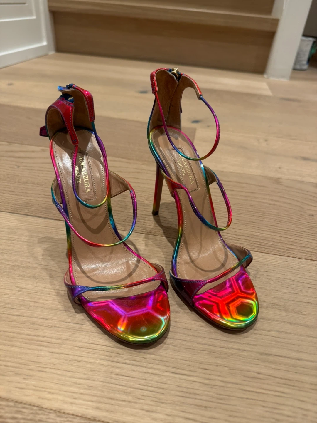Aquazzura Rainbow Metallic Strappy Heels