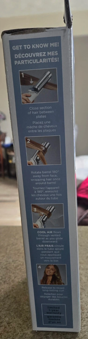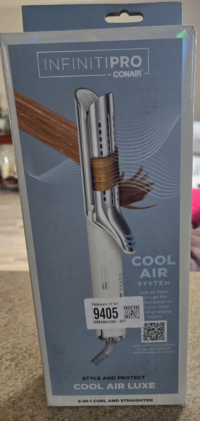 InfinitiPro by Conair Cool Air Luxe 2-in-1 styling tool for curling and straightening hair. It features a cool air system to set styles for long-lasting results. Suitable for dry location only.