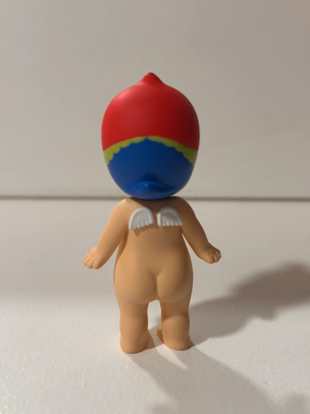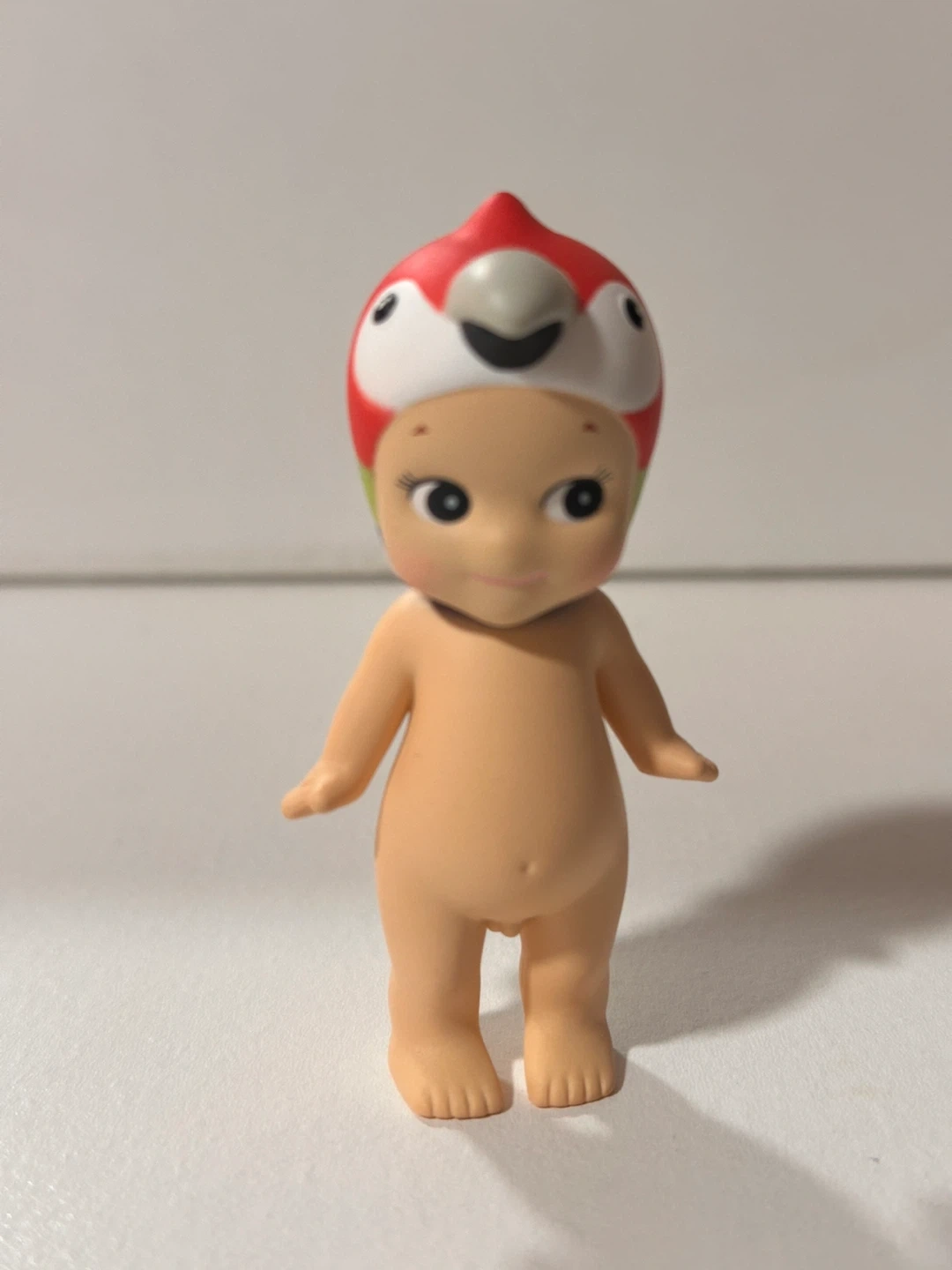 This is a Sonny Angel mini figure from the Parrot Series. It features a cute baby doll design with a detachable parrot-themed headpiece. It's a fun collectible toy for display.