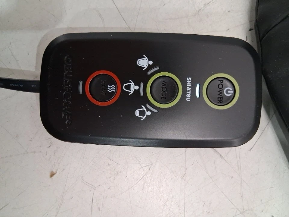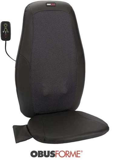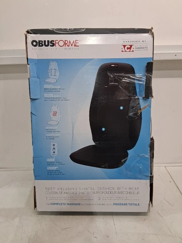 This is an ObusForme Deep Kneading Shiatsu Back Massager. It has three massage zones, for the upper, lower or full back. It is designed as a massage cushion for use with a chair.