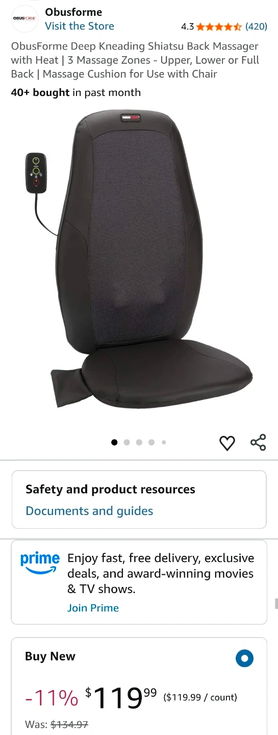 ObusForme Deep Kneading Shiatsu Back Massager with Heat