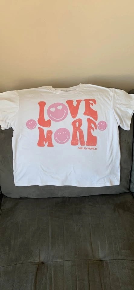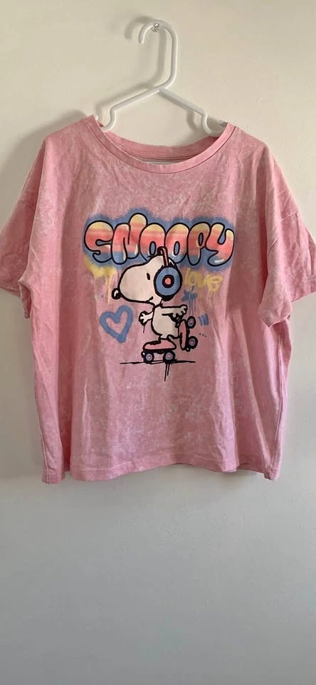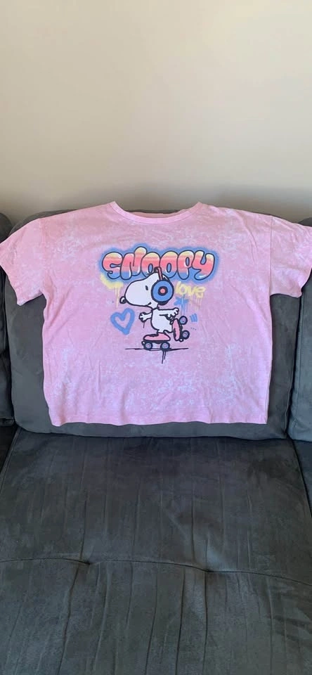 Includes 2 Snoopy and Smiley World cropped graphic t-shirts. SIZE LARGE. Snoopy shirt is new without tags. From a smoke and pet free home. Cash only. Pick up in Charleswood.