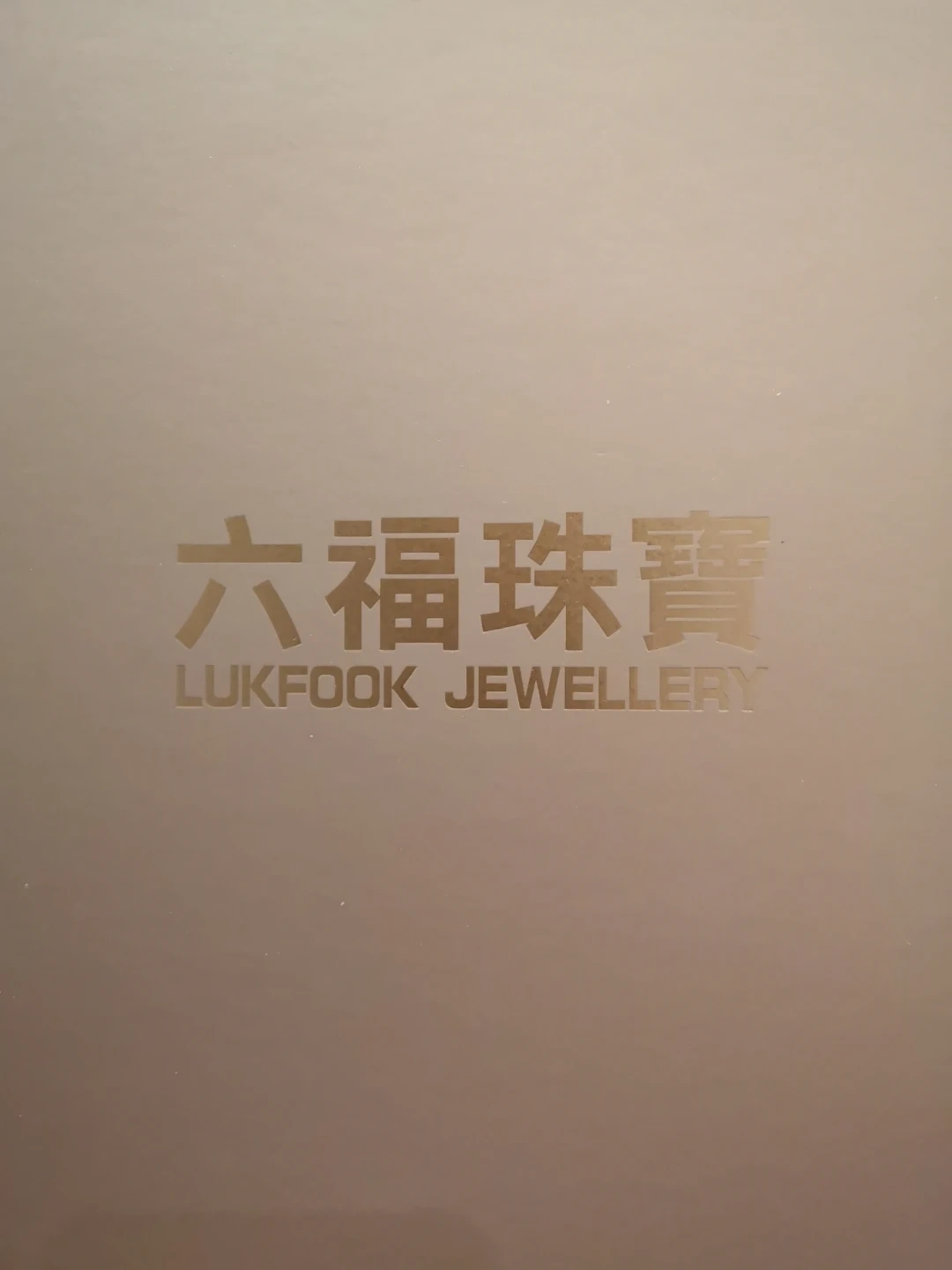 This is a Lukfook Jewellery portfolio folder. It's a shiny gold colour with a textured hexagonal pattern on the outside and a smooth finish inside. It has multiple slots for documents.