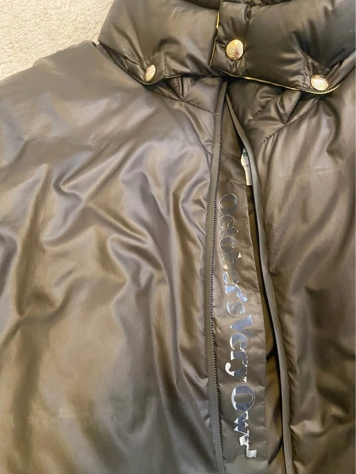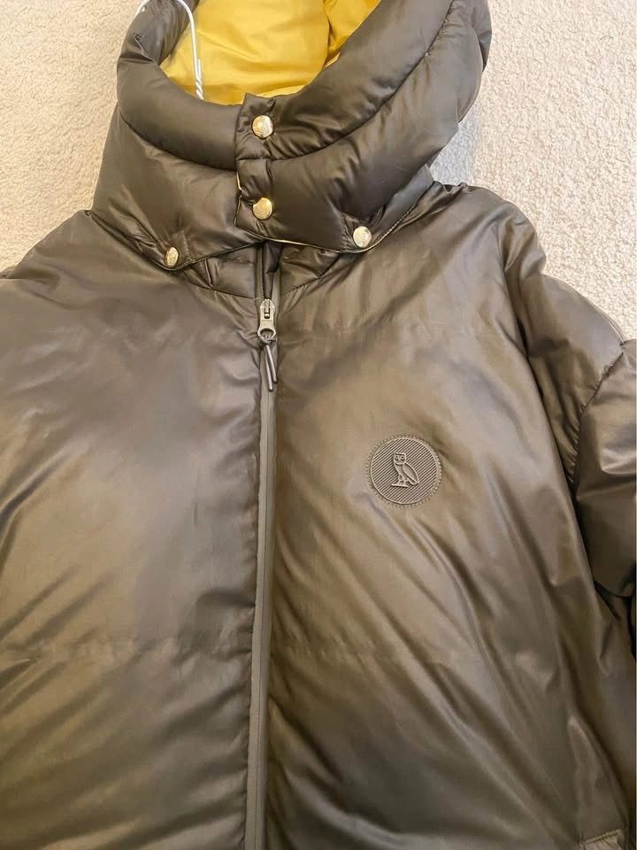 Authentic OVO (October’s Very Own) puffer jacket in a clean olive / dark green colorway with yellow interior. Thick, warm, and built for cold weather — premium feel with subtle OVO branding.