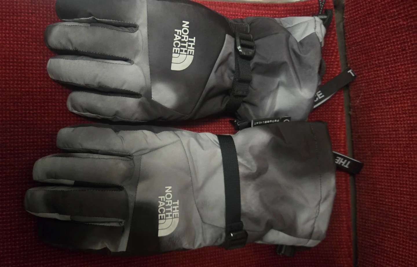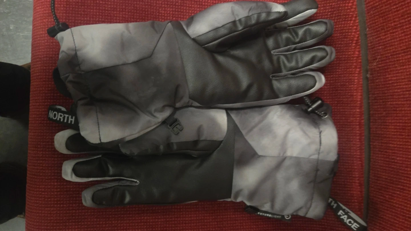 These are The North Face gloves featuring FUTURELIGHT technology. They have adjustable straps for a secure fit. Material is a mix of nylon and leather for durability.