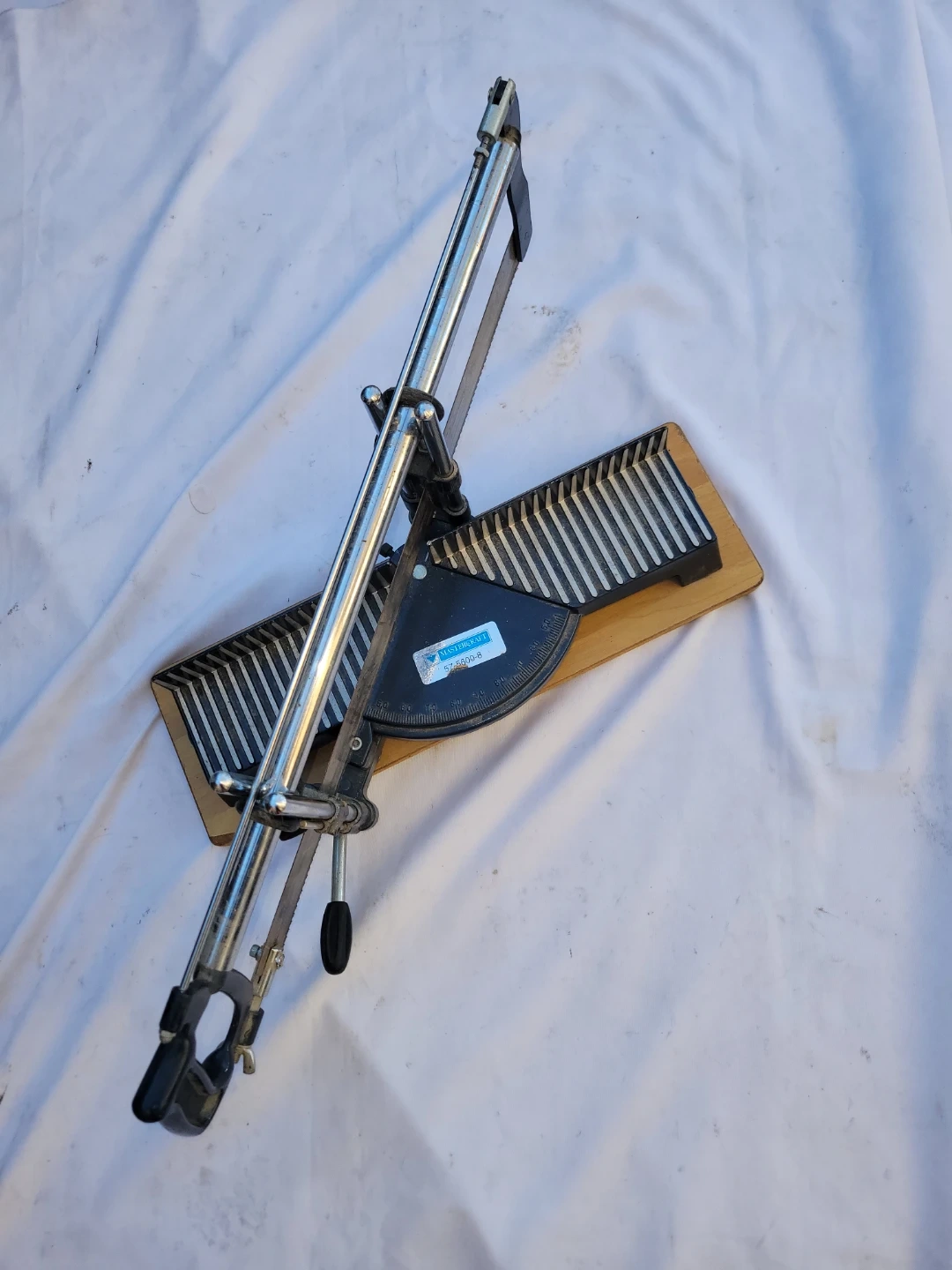 This is a Mastercraft miter box saw. It's designed for accurate angle cuts on various materials. Includes the saw blade and base.