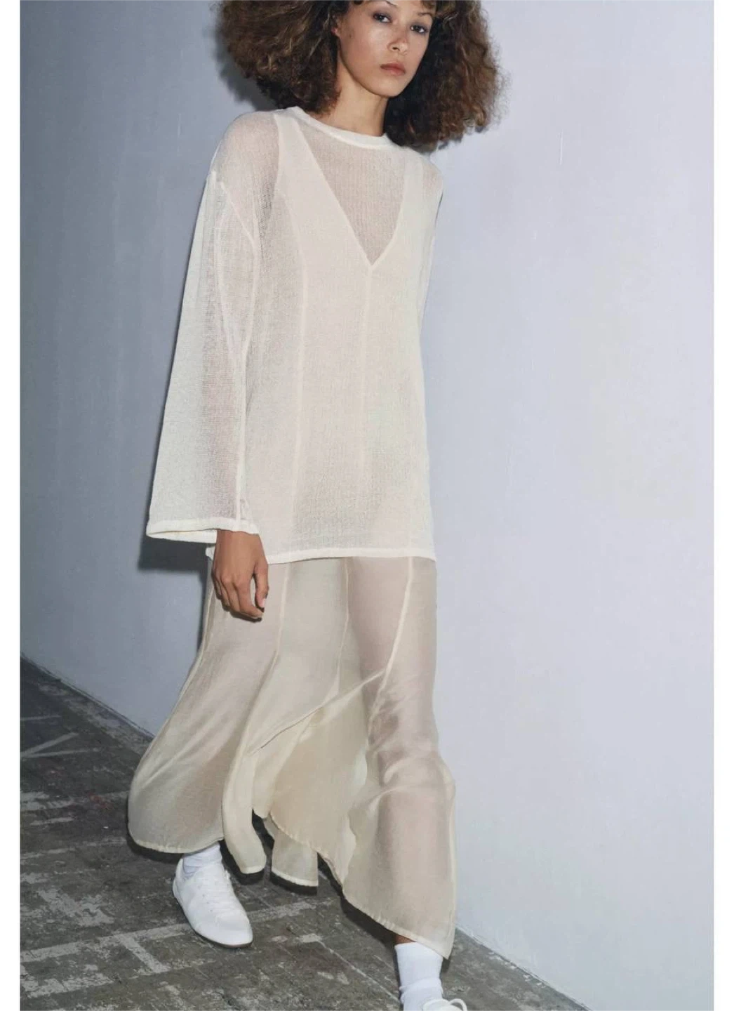 Long cream combination dress Zara, size M
