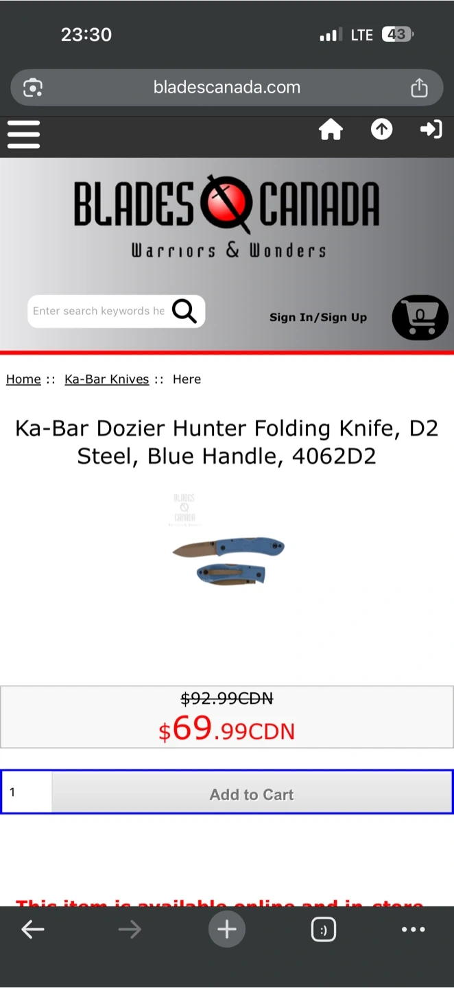 Weight: 0.15 lb Blade Length: 3 inches Overall length: 7.25 inches Shape: Drop Point Tang Stamp: KA-BAR/Dozier Blade Material: D2 Steel Lock Style: Lockback Grind: Hollow Handle Material: Zytel Rockwell Hardness: 57-59 Knife Country of Origin: china Blade Thickness: 0.11 inches Blade Width: 0.875 inches