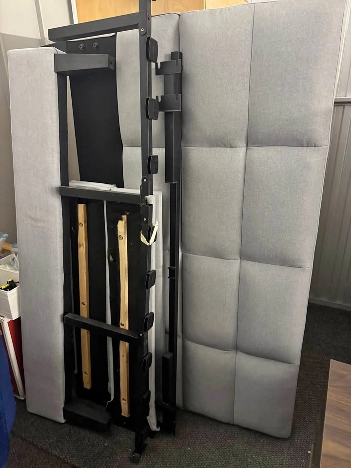 This FULL/double size bed is in good condition and has an easy assembly process as all pieces are included. The mattress can be included for an extra $120. It is currently disassembled for easy pickup. Self-pickup is available in the Markham area at Kennedy & Steeles. The ad is still available if you see it.