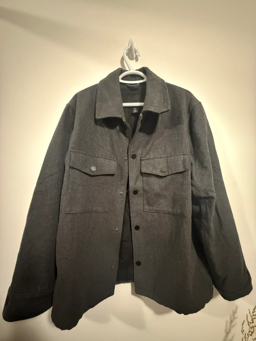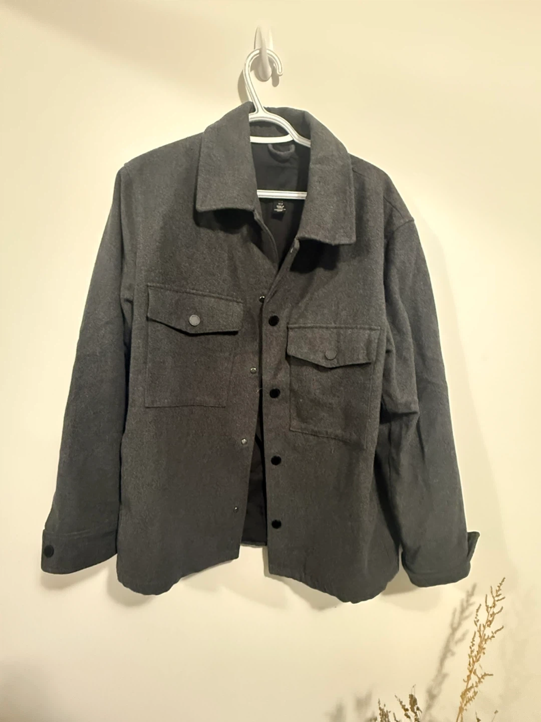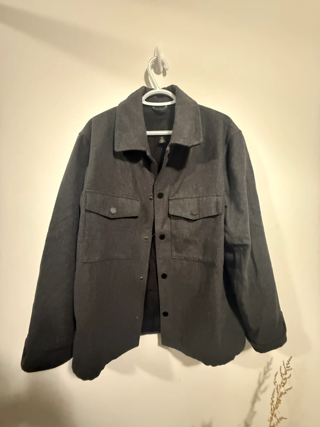 Selling a H&M shacket in size medium! It's a stylish and versatile piece, perfect for layering. The colour is a nice dark grey and it's in great condition