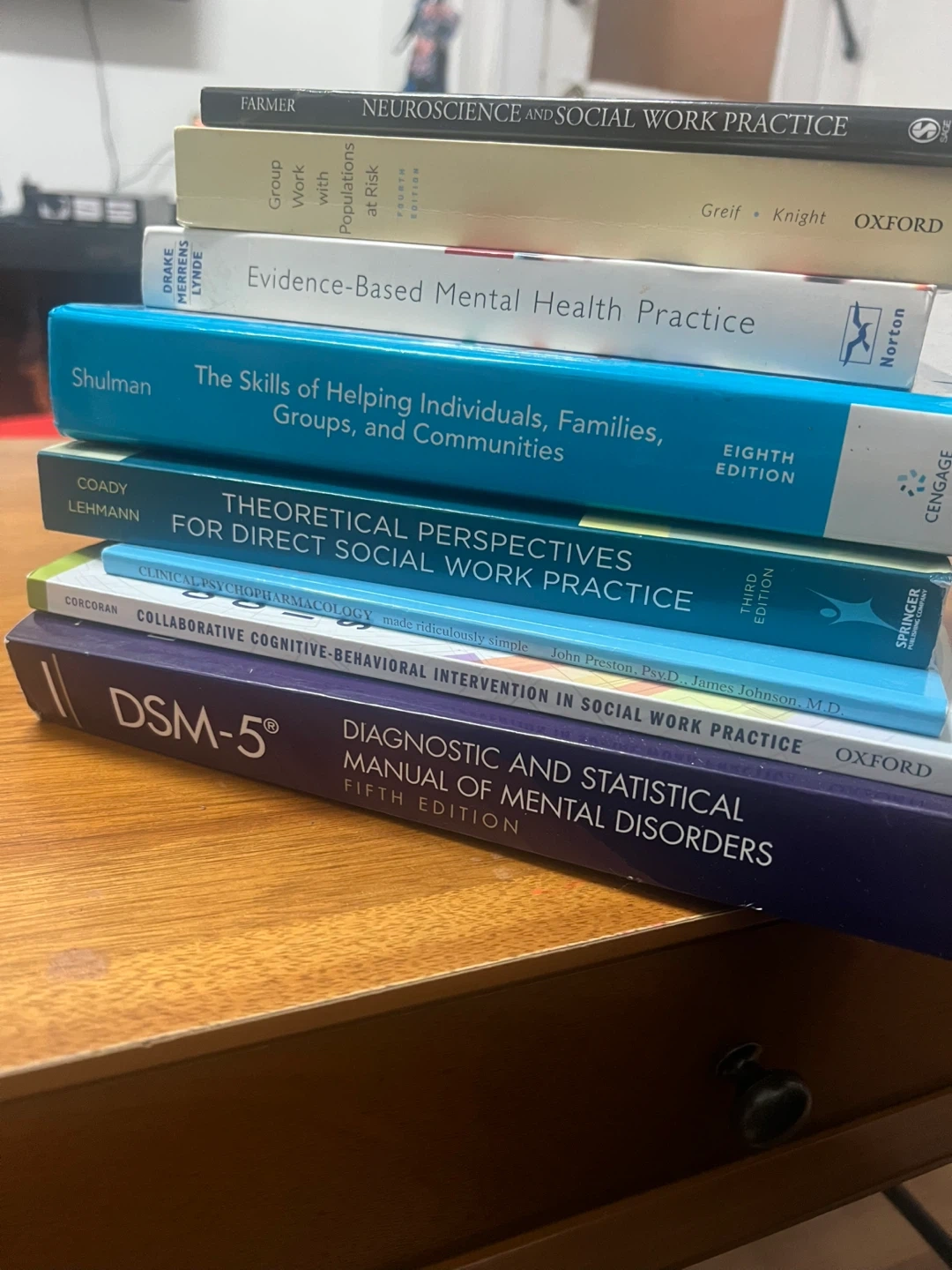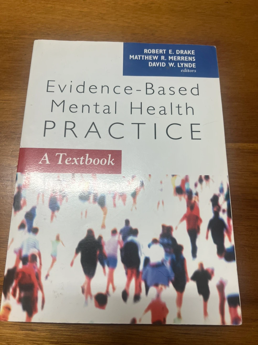 Selling a textbook titled "Evidence-Based Mental Health Practice: A Textbook" edited by Robert E. Drake, Matthew R. Merrens, and David W. Lynde. Also included in the stack of books are: