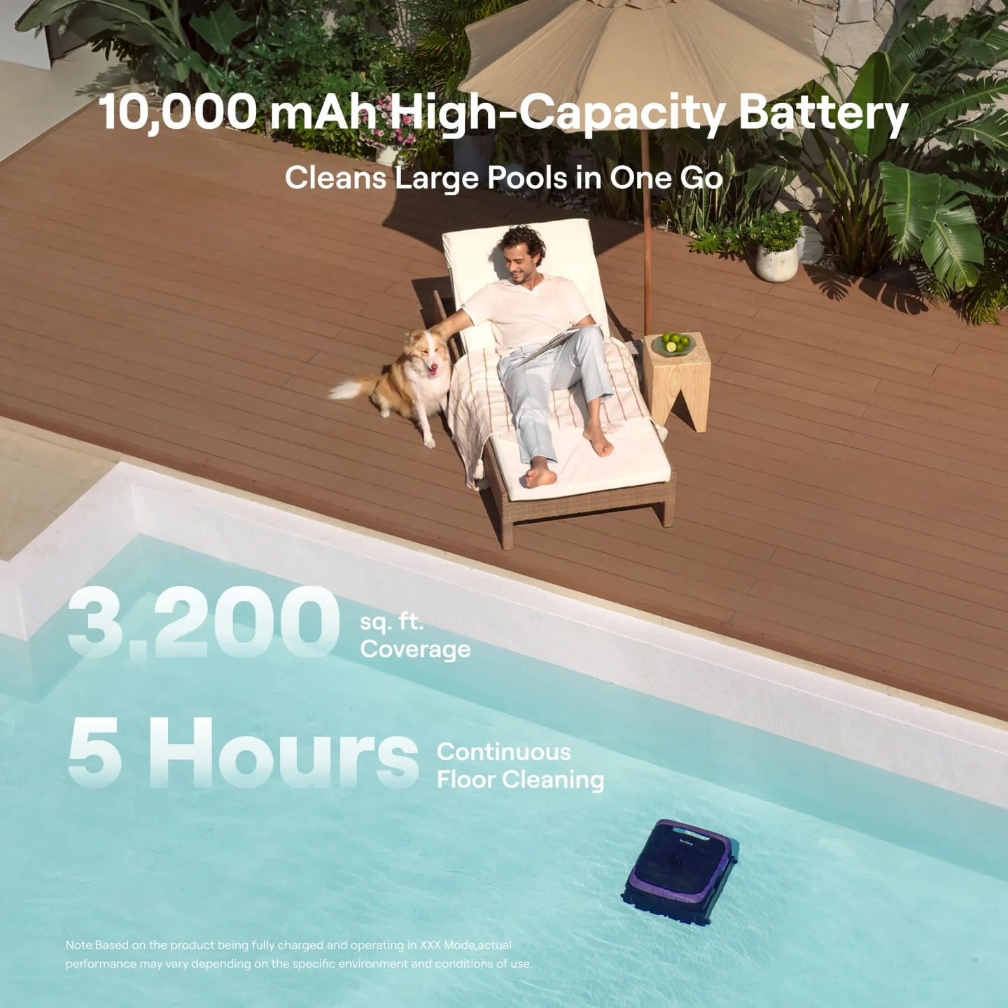 10,000 mAh Battery — Up to 7 hours surface or 5 hours floor cleaning on a single charge.