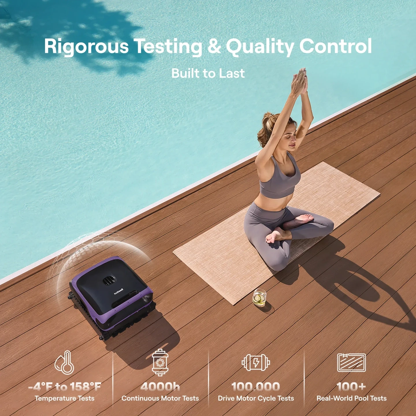 6L Debris Capacity — 6L/150µm filter handles all daily debris; optional 3µm ultra-fine filter for crystal-clear water.
