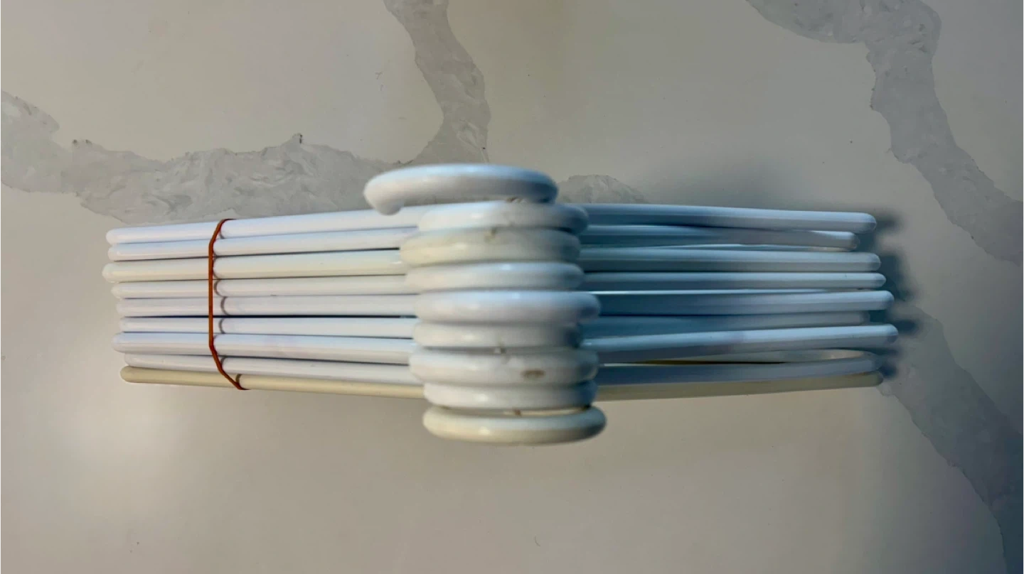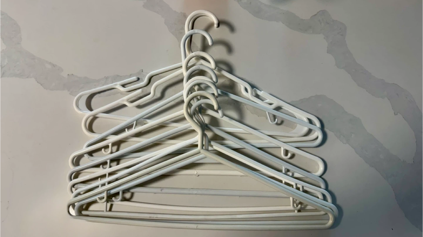 A set of 10 white plastic clothes hangers. These are standard hangers, suitable for most garments. They're durable and great for organizing your closet