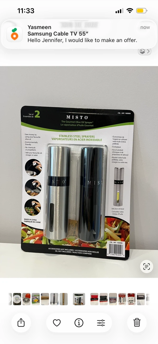 This set includes two Misto stainless steel gourmet olive oil sprayers. They're environmentally friendly and don't use chemicals or propellants. You can add your favourite oil, vinegar, or water to them.