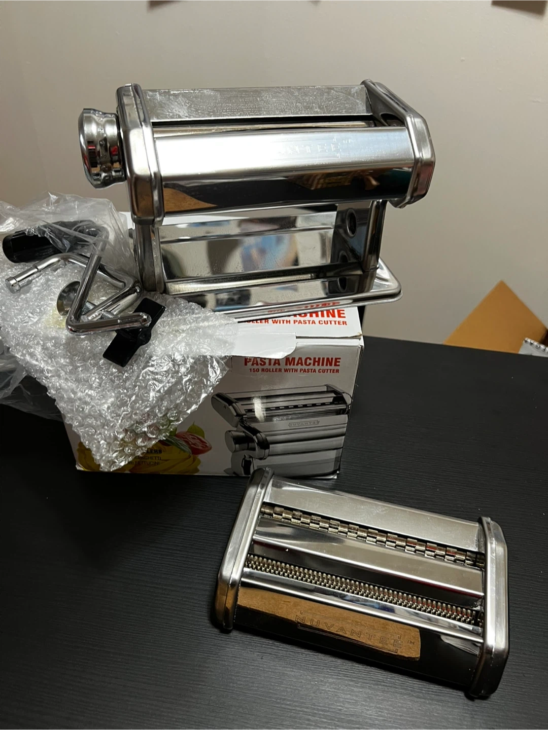 Selling a Nuvantee pasta machine in excellent condition! It's sold also with different pasta cutter, for spaghetti and tagliatelle. Comes with the box!