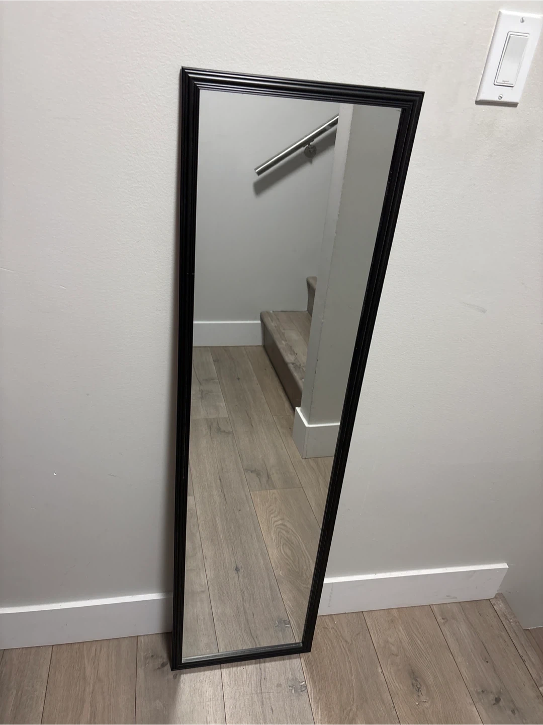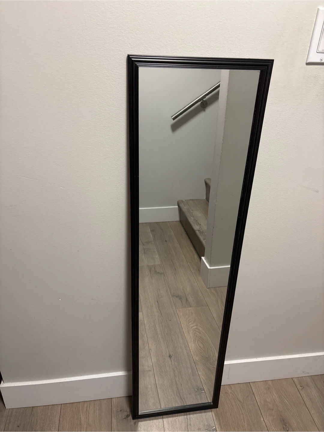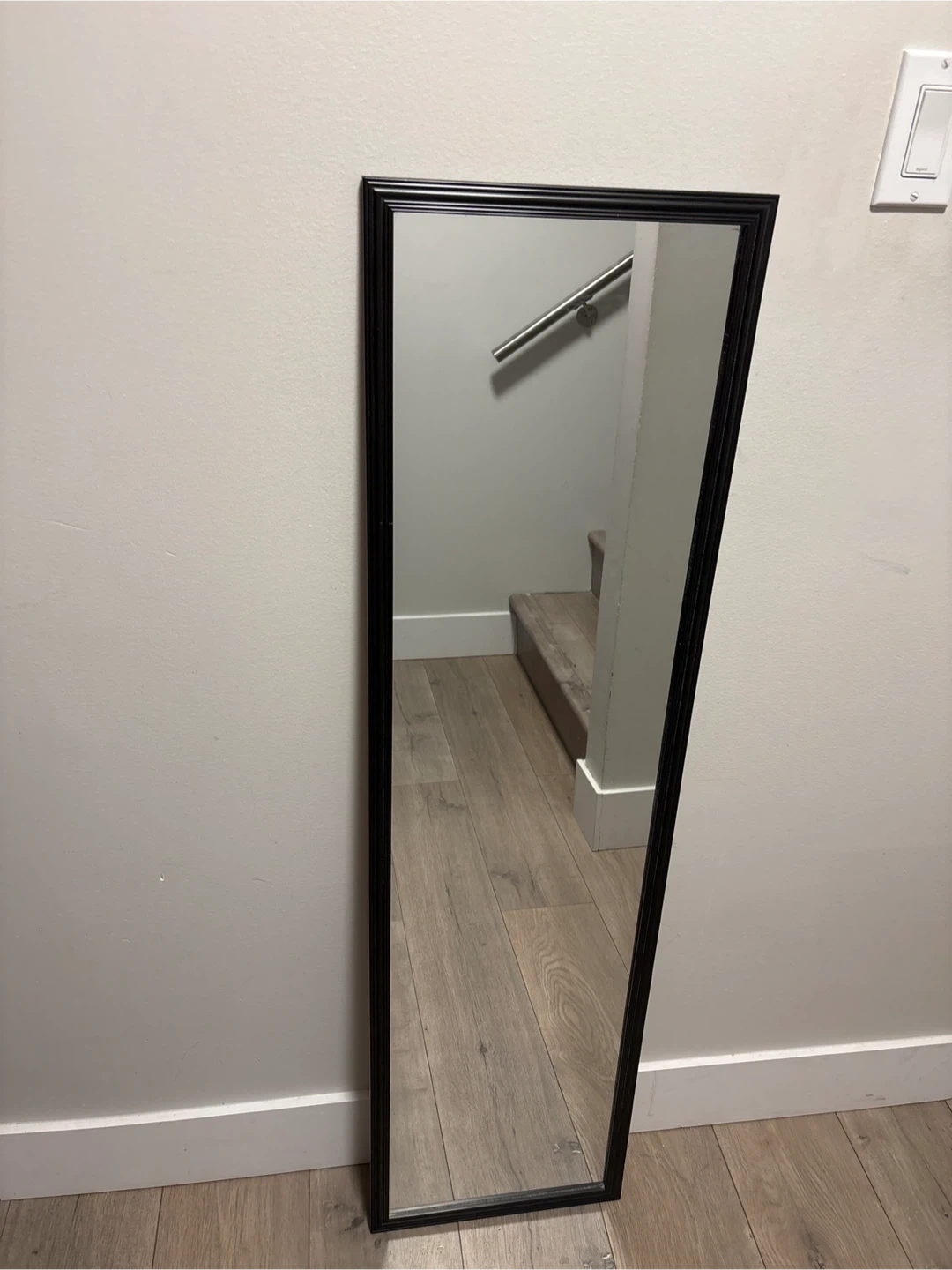 Selling a full-length mirror with a sleek black frame. It's in great condition and ready to brighten up your space!