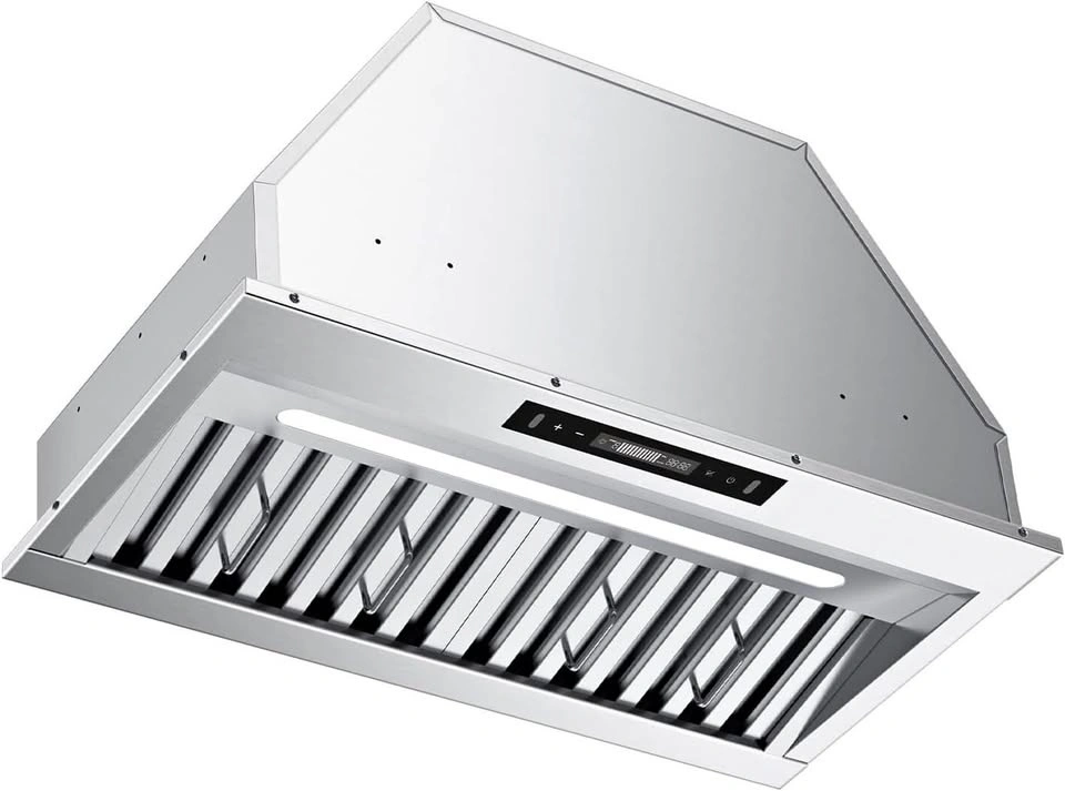 A powerful, brushed stainless steel insert hood designed for strong household ventilation. Its deep-cavity design expands suction coverage, delivering up to 900 CFM while keeping noise around 60 dB. Gesture control lets you change speeds hands-free, and the long LED bar provides even lighting across the cooktop. With three fan speeds, it fits most 28"β30" cabinets and supports both ducted and ductless installation. Comes with LED light bar, deflector filters, charcoal filter, and mounting hardware.