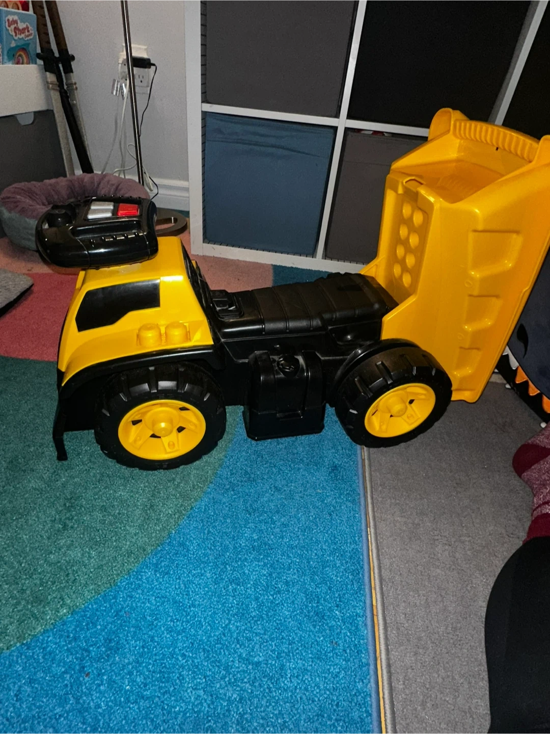 Selling a CAT ride-on dump truck in yellow and black! It's perfect for little ones who love construction vehicles. This truck is sturdy and ready for lots of fun adventures in your backyard or playroom!