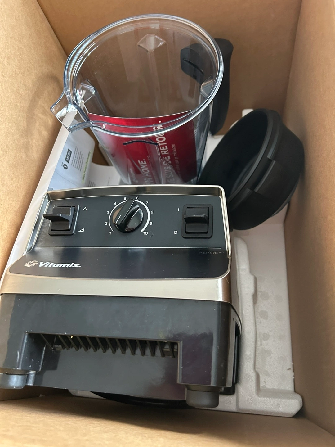 Selling a Vitamix Aspire blender that's in new condition! It comes with all the original components and packaging. Ready to blend up your favourite smoothies and soups