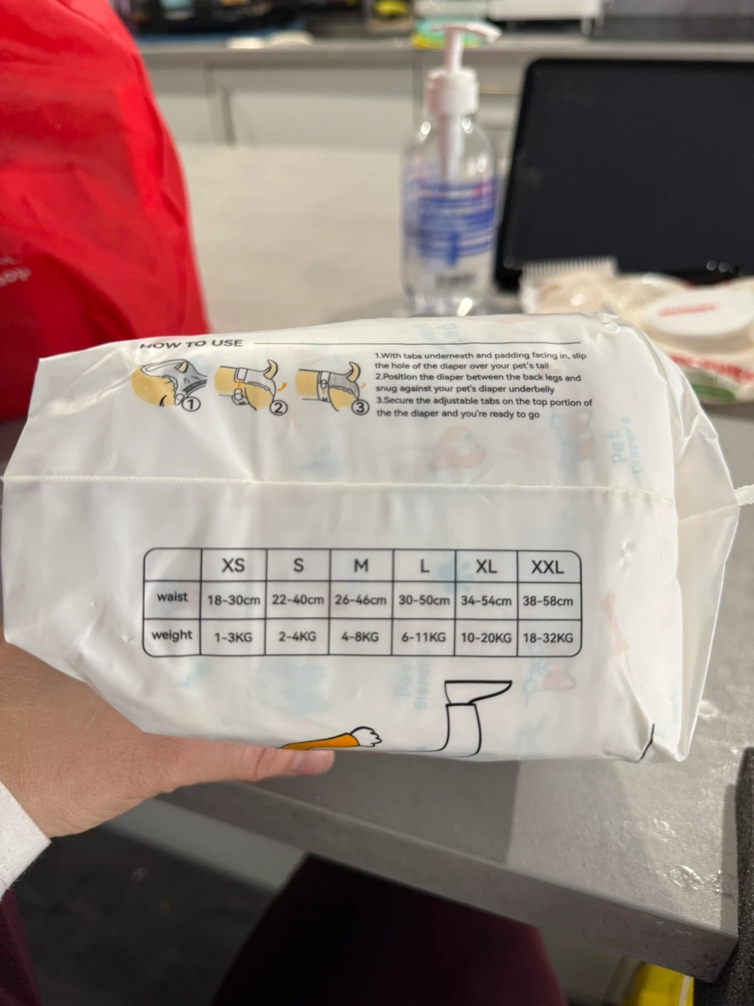 Pet Diapers, size XL. These are used for females during rut, untrained puppies, excitable urination, and incontinence. The package contains 12 diapers. Waist size 34-54cm, suitable for pets weighing 10-20kg.