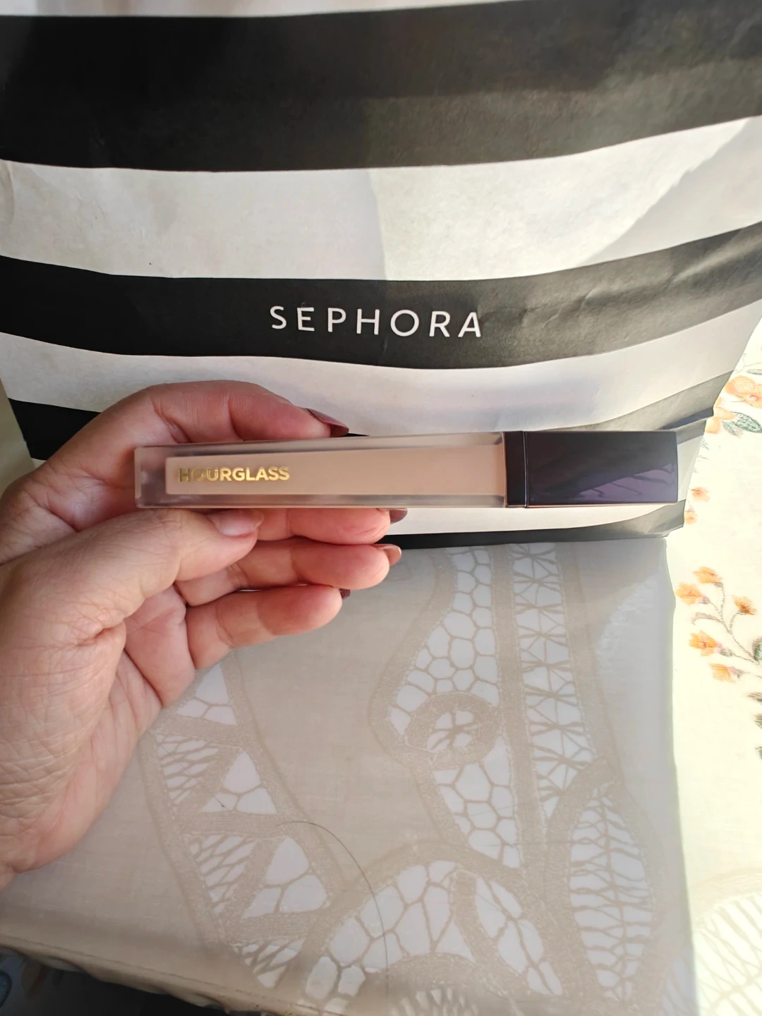 This is an Hourglass Vanish Airbrush Concealer in the shade Drift 1.5. It's a full-coverage concealer that provides a weightless finish. The formula is designed to blur and brighten the skin.