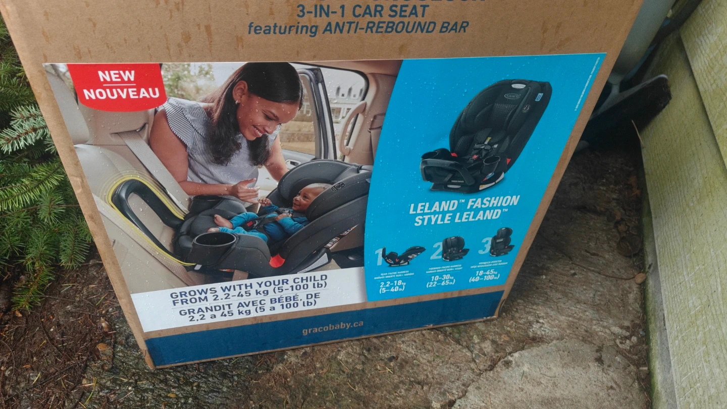 This Graco 3-in-1 car seat is designed to grow with your child from 2.2 to 45 kg (5 to 100 lb). It features an anti-rebound bar for added safety. Available in Lelande Fashion Style.