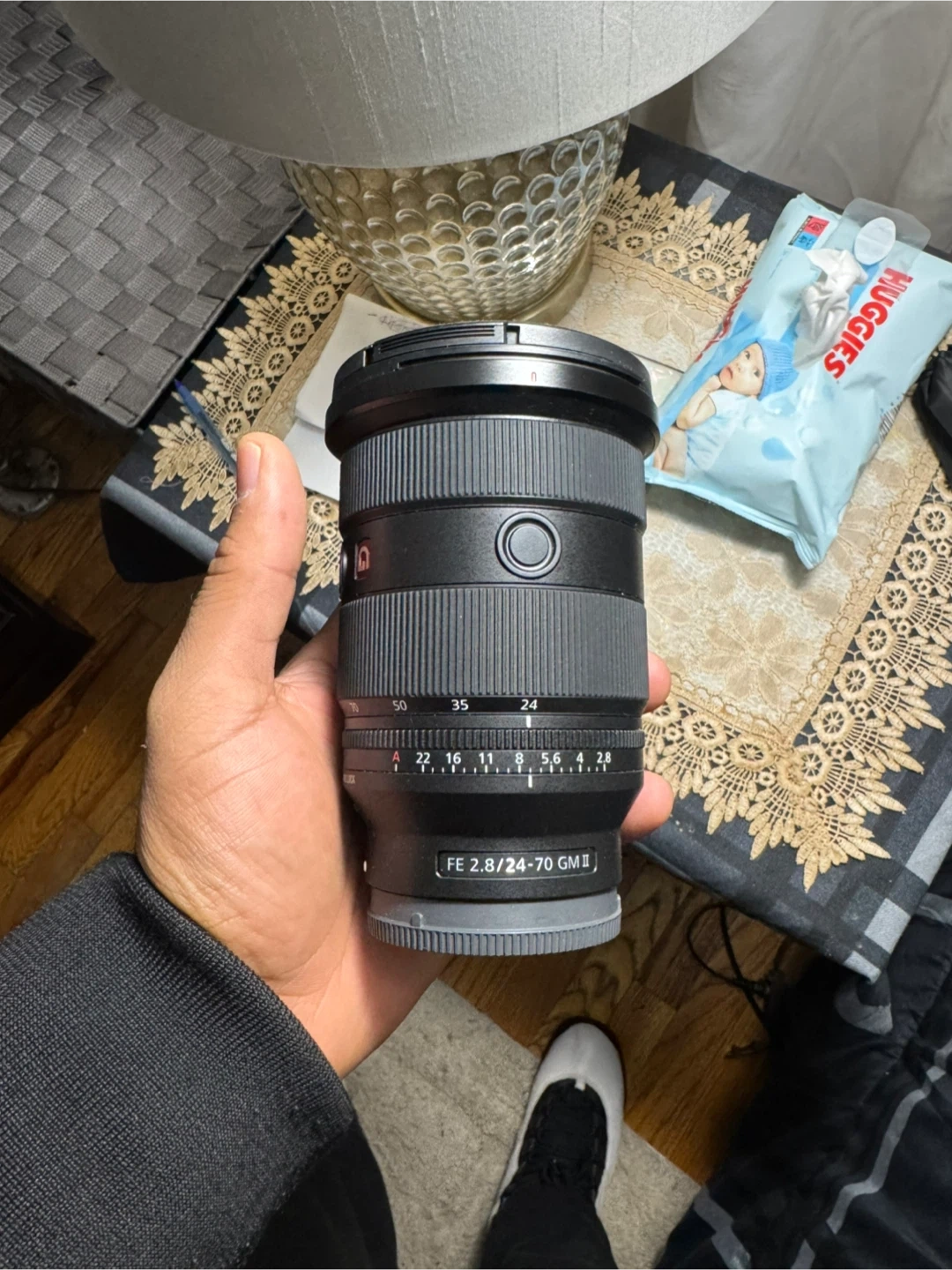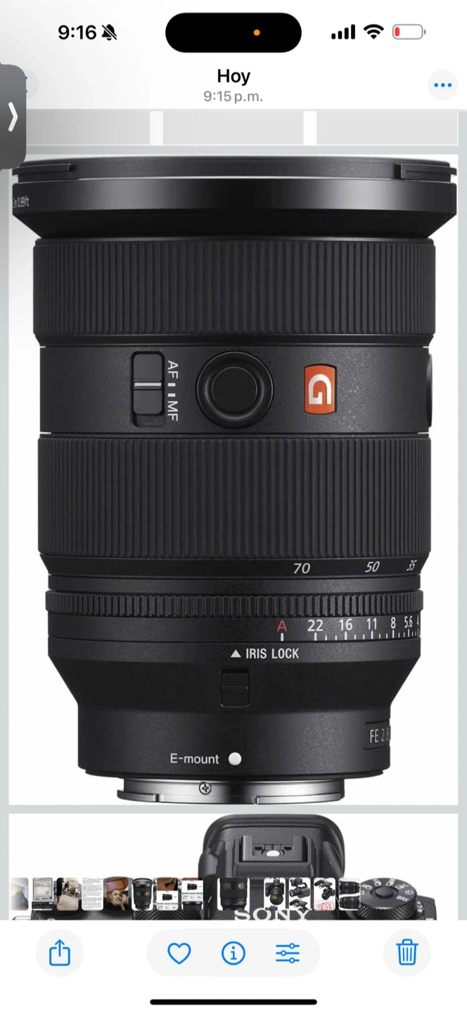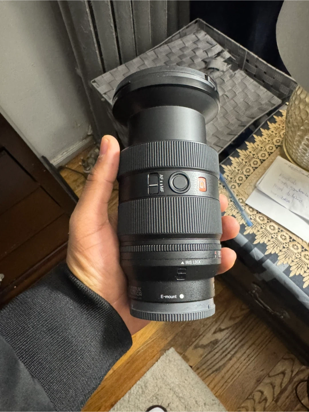 This is a Sony camera lens. It's black and has various controls for focus and aperture. Perfect for capturing high-quality photos and videos.