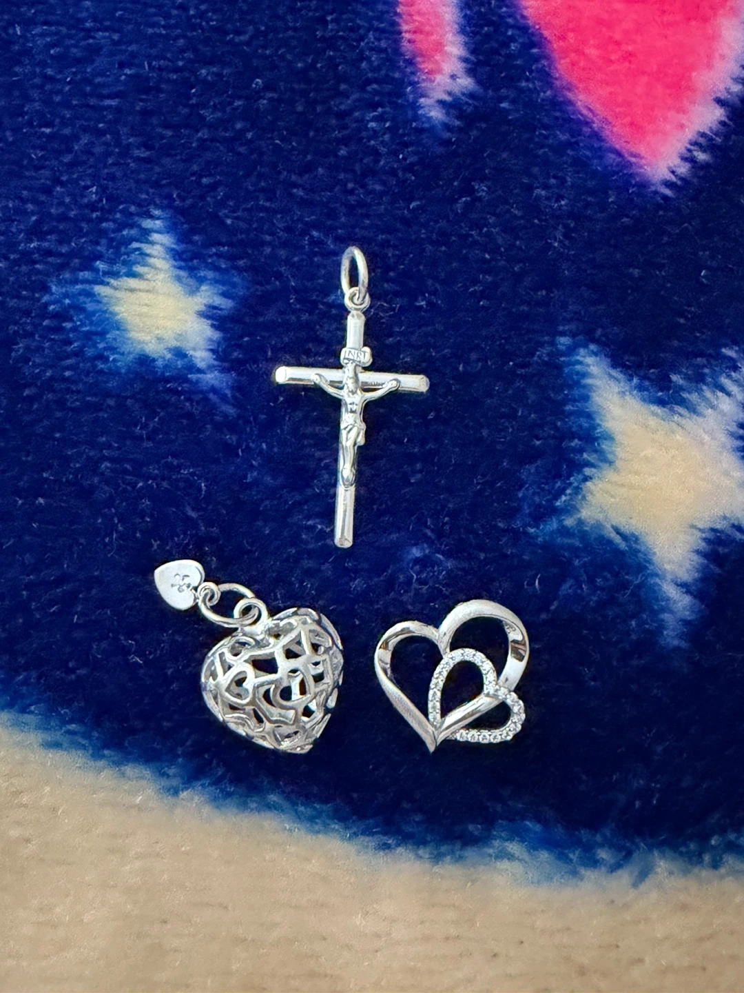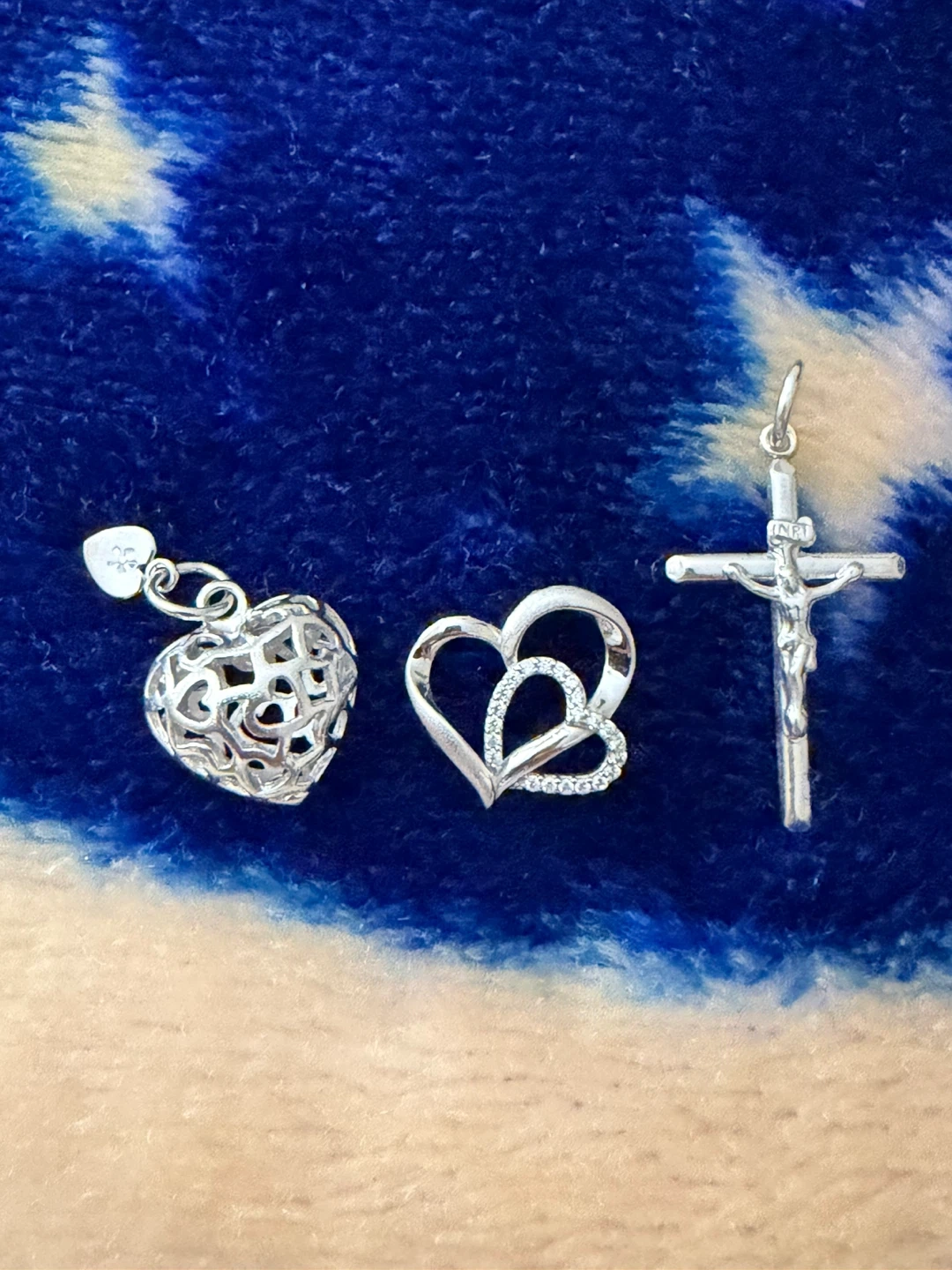 Sterling Silver Charms - Cross, Heart, and Double Heart