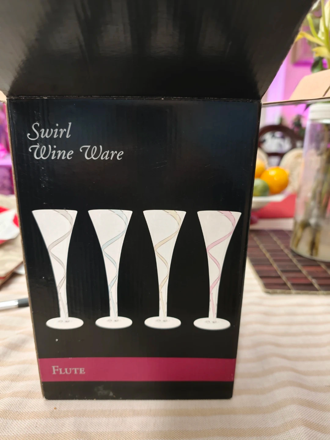 Elevate your next celebration with this elegant 4-piece set of Beringer Swirl Wine Ware. Originally purchased 15 years ago, this set has been carefully preserved in its original presentation box and is in excellent condition.