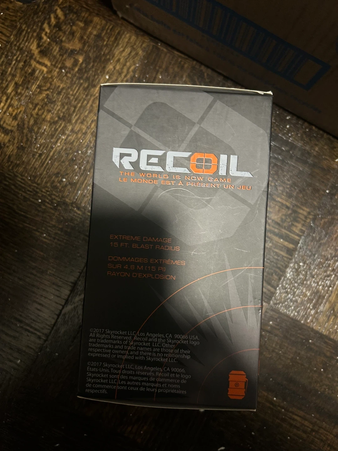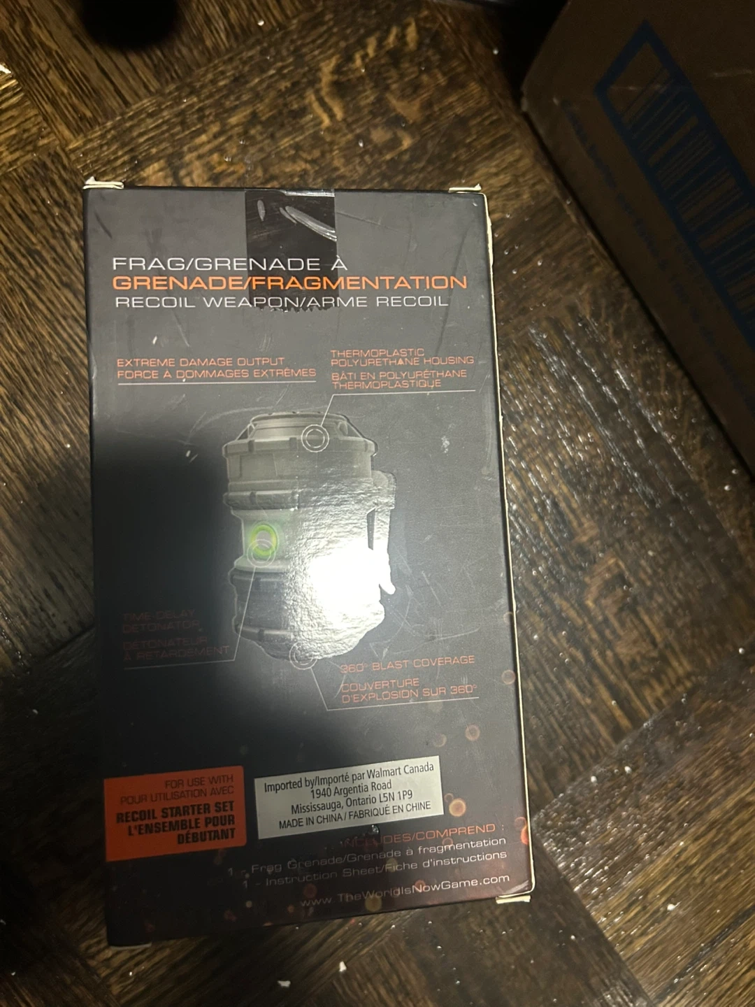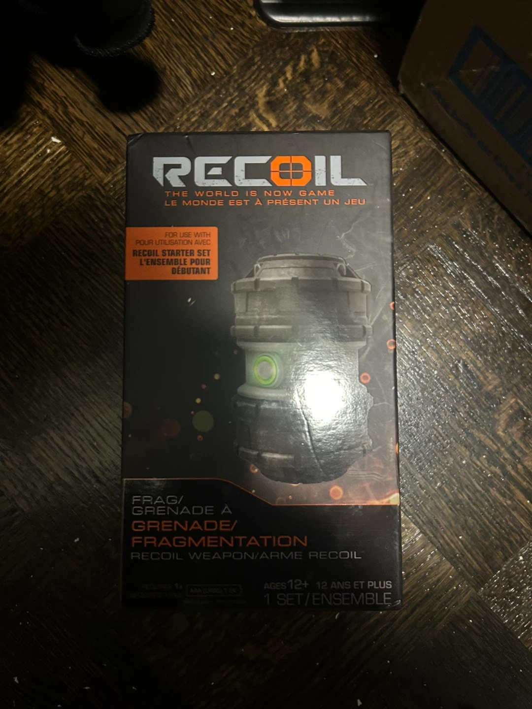 This is a Recoil Frag Grenade toy, part of The World Is Now Game. It features extreme damage output and 360 blast coverage. Ages 12 and up.